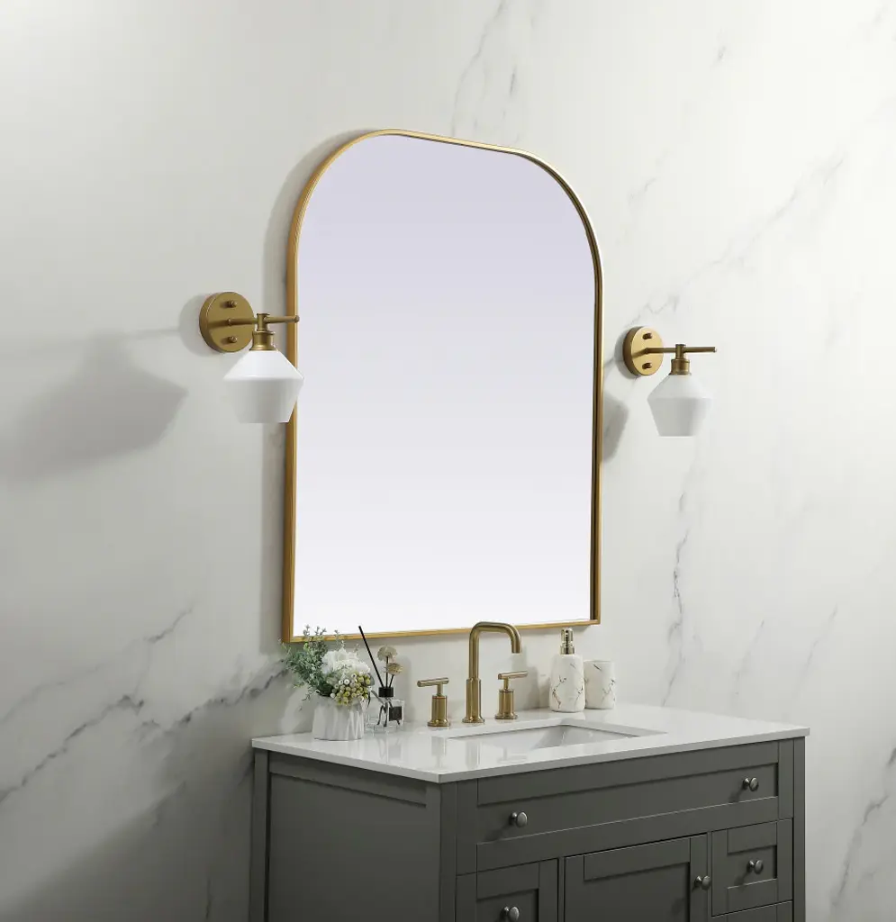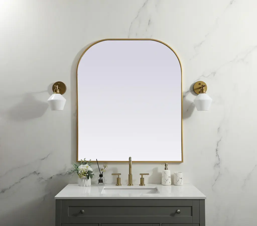 Metal Frame Arch Mirror 36x42 Inch, Brass