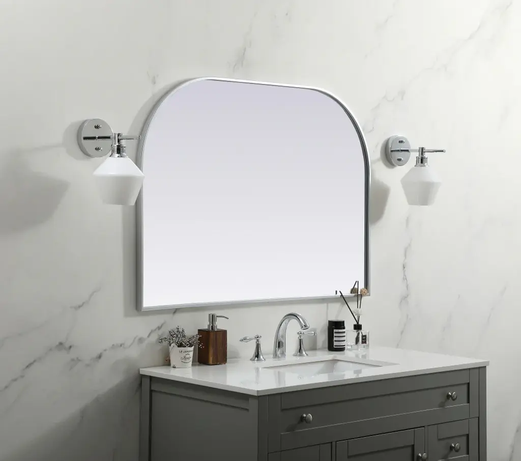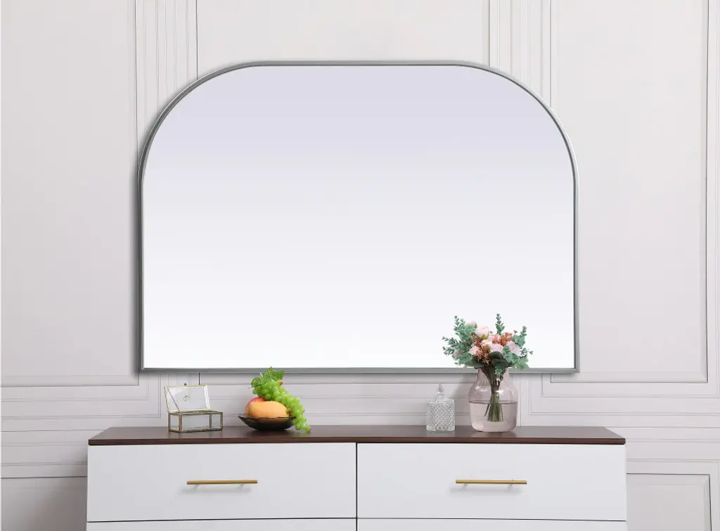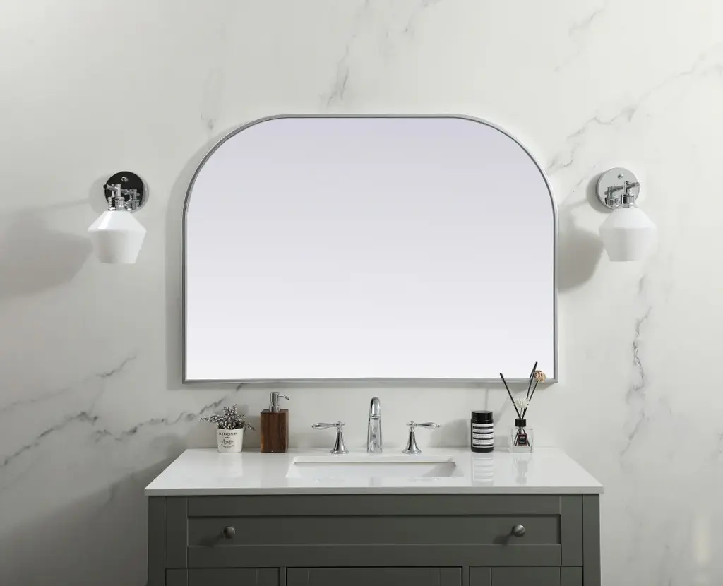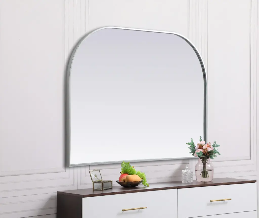 Metal Frame Arch Mirror 42x30 Inch, Silver