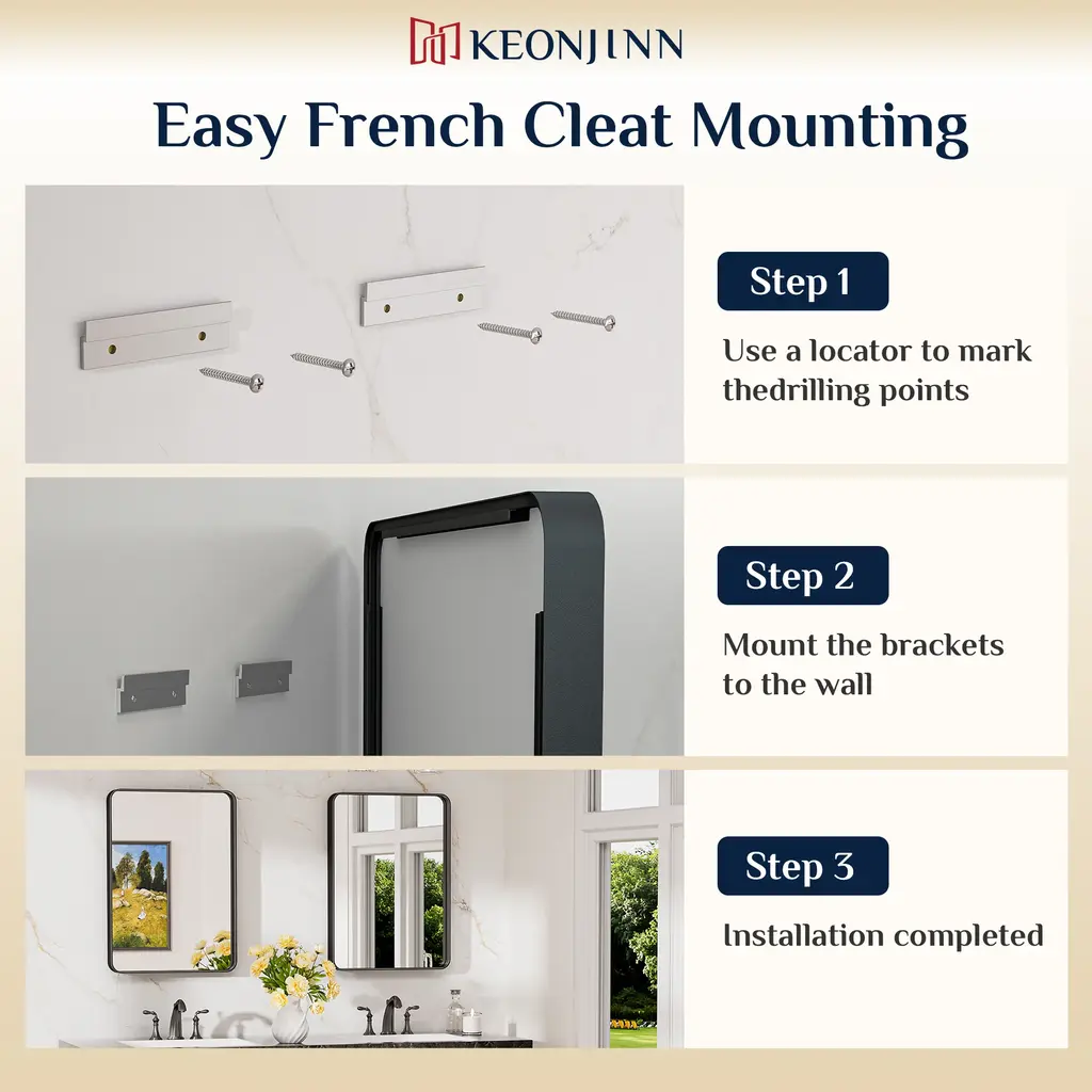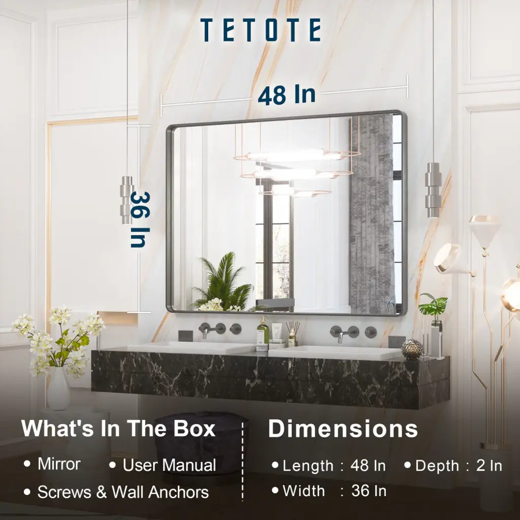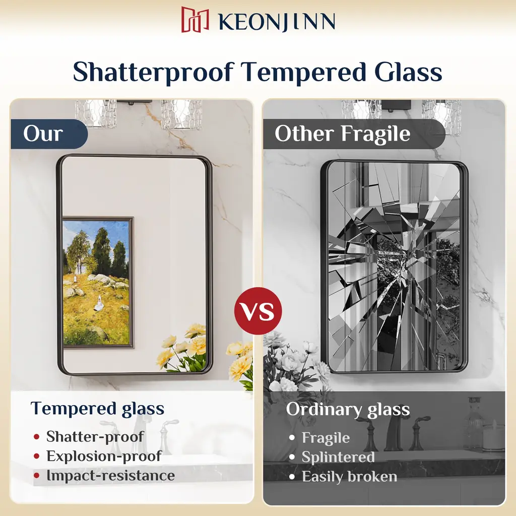 Multi-size design:Multi-Size Design offers both gold _ black _Silver and Bronze colors for coustomer to choose from. People can choose the perfect size for they needs.Multi-scene use for bathroom_bedroom_living room_salon checkroom .....Brushed metal frame_Metal frame made of high quality aluminum alloy and thickened baking paint, brushed metal material. Safe and durable, waterproof and non-rusting.Easy To Install :This lightweight mirror comes with more reinforced "+" holes on the back, wall hardware and screws that can be hung horizontally or vertically.Just drive the screws into the wall and chose two holes to hang the mirror on the screws to complete installation.Exceptional Quality_Our bathroom mirror adopts 5-layer float technology to ensure 1:1 restoration of real image, no distortion, fast dispersion of fog.The metal frame is made of high quality aluminum alloy and thicken baking paint.Professional Packaging_Each mirror is made to a secret standard and secured with customized thick foam in carton box.Before delivered,it passed all rigorous tests including dropping,impact test etc. Only for you to provide the perfect mirror.