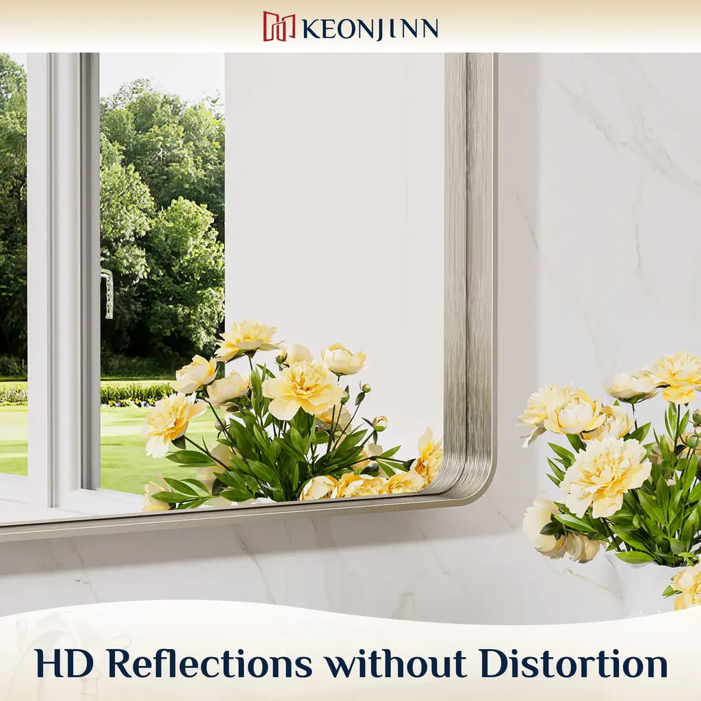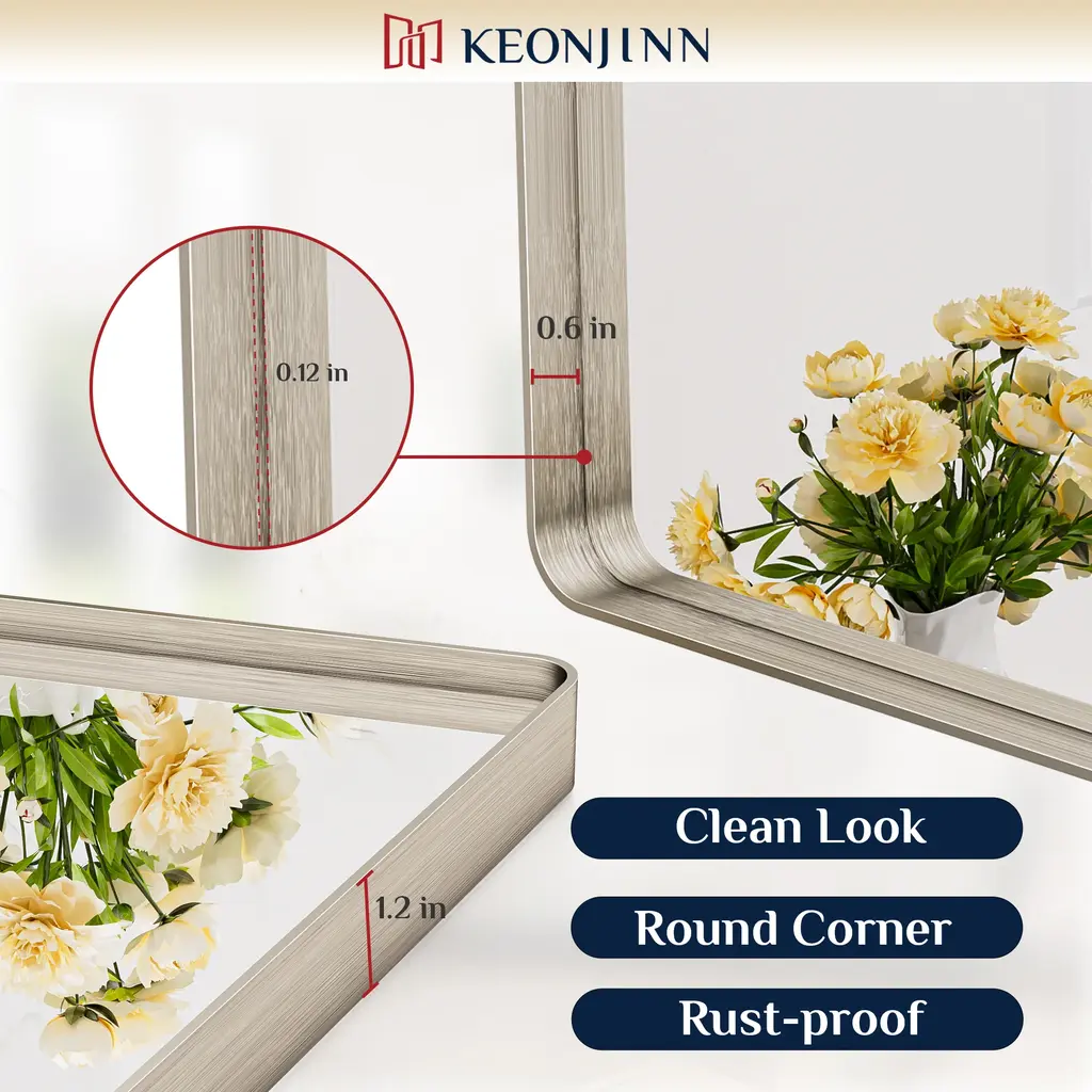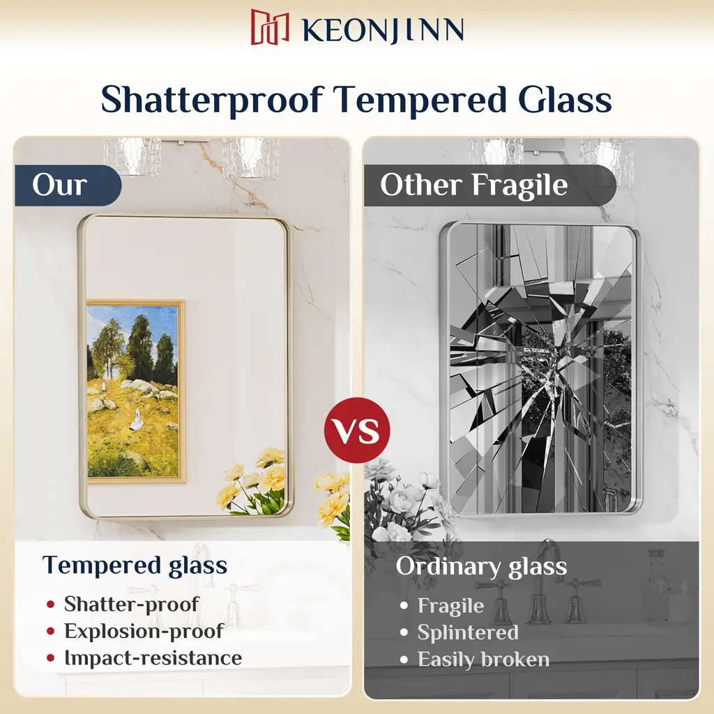 Multi-size design:Multi-Size Design offers both gold _ black _Silver and Bronze colors for coustomer to choose from. People can choose the perfect size for they needs.Multi-scene use for bathroom_bedroom_living room_salon checkroom .....Brushed metal frame_Metal frame made of high quality aluminum alloy and thickened baking paint, brushed metal material. Safe and durable, waterproof and non-rusting.Easy To Install :This lightweight mirror comes with more reinforced "+" holes on the back, wall hardware and screws that can be hung horizontally or vertically.Just drive the screws into the wall and chose two holes to hang the mirror on the screws to complete installation.Exceptional Quality_Our bathroom mirror adopts 5-layer float technology to ensure 1:1 restoration of real image, no distortion, fast dispersion of fog.The metal frame is made of high quality aluminum alloy and thicken baking paint.Professional Packaging_Each mirror is made to a secret standard and secured with customized thick foam in carton box.Before delivered,it passed all rigorous tests including dropping,impact test etc. Only for you to provide the perfect mirror.