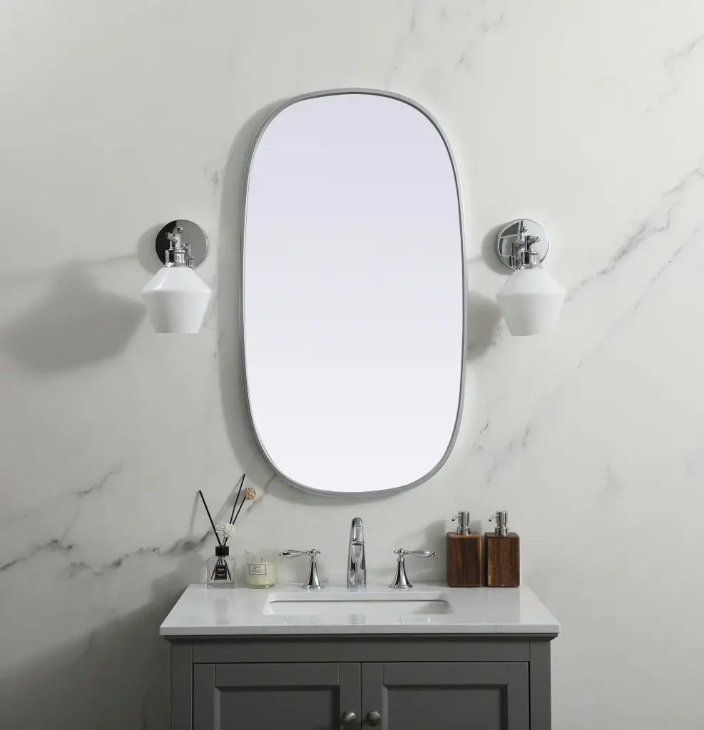 Crafted of metal, this mirror strikes a rounded corner silhouette. Instantly open up any space in your home with this minimalist wall-mounted mirror. Its slender, clean-lined frame sports a classic finish, while the glass mirror within features a flat, for a brilliant reflection, letting the light bounce off to expand your space. Designed in an oblong shape, this metal-frame mirror showcases in the three available satin finishes in black, brass, or silver. Mount this work of art in any room of your choice for added visual impact.Simple oblong silhouette mirror looks effortlessly chic and glamorousthe mirror comes with a solid MDF board backing and three welded keyhole hanger for easy installationMirror is recessed into the ultra-thin iron sturdy metal frameperfect accent mirror to add visual interest and depth to your bedroom, living room, bathroom, entry way or any room!can be mounted both in a vertical or horizontal orientationmirror arrives at your home in one piece with no installation requiredglass insert measures 19.22 inch wide X 0.15 inch deep X 35.22 inch high