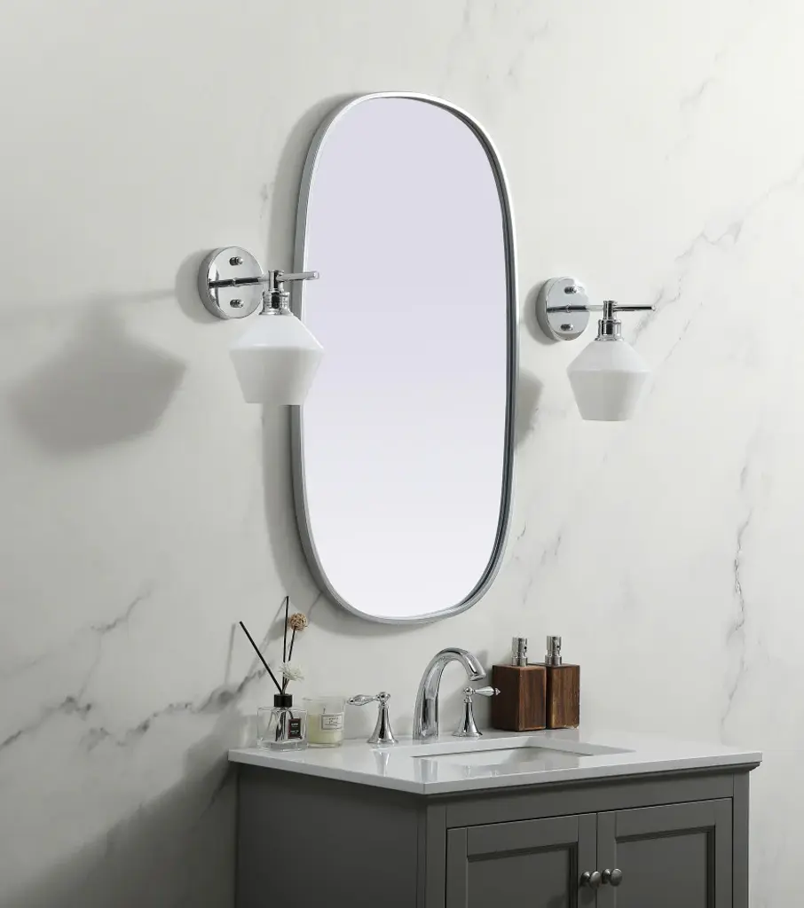 Metal Frame Oval Mirror 20x36 Inch, Silver