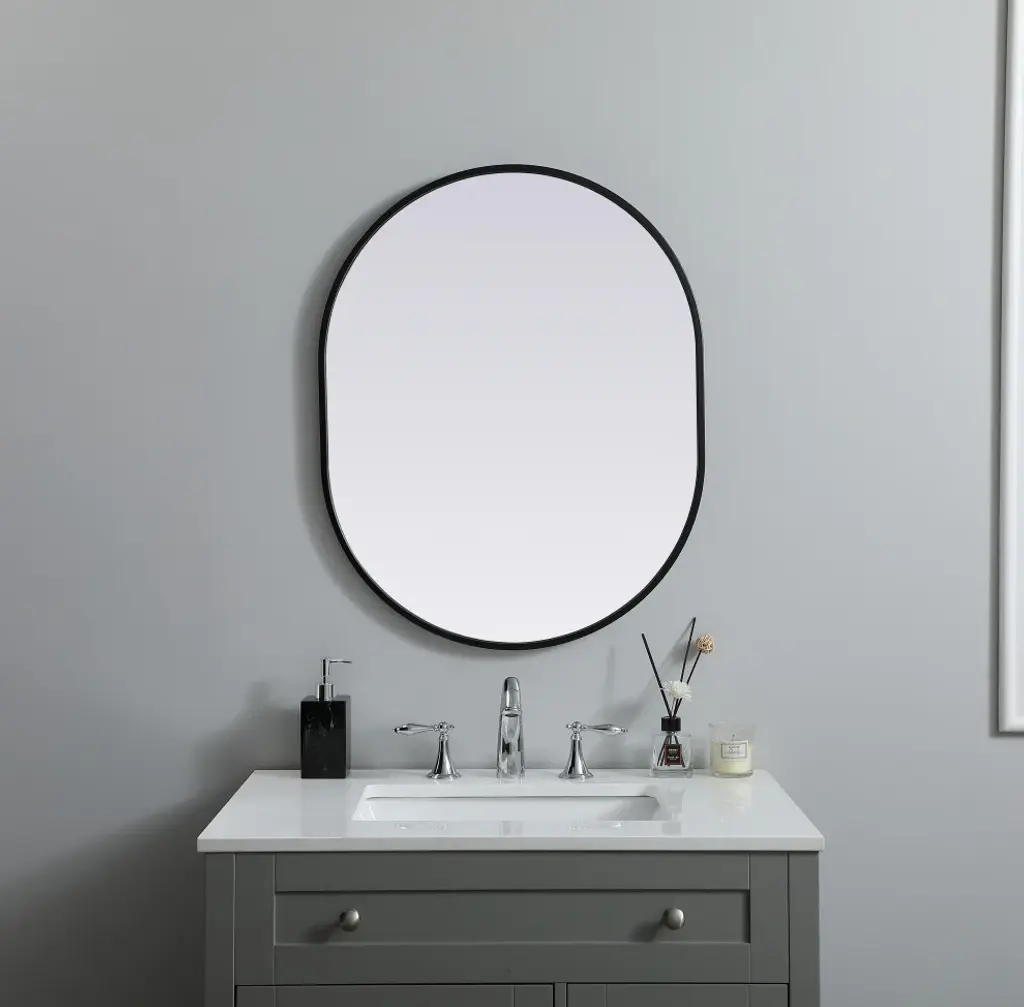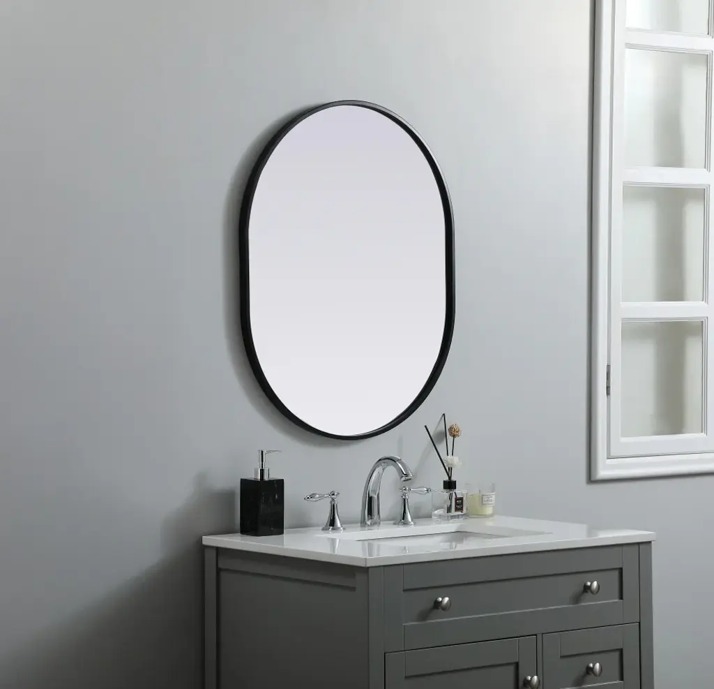 Metal Frame Oval Mirror 24x30 Inch, Black