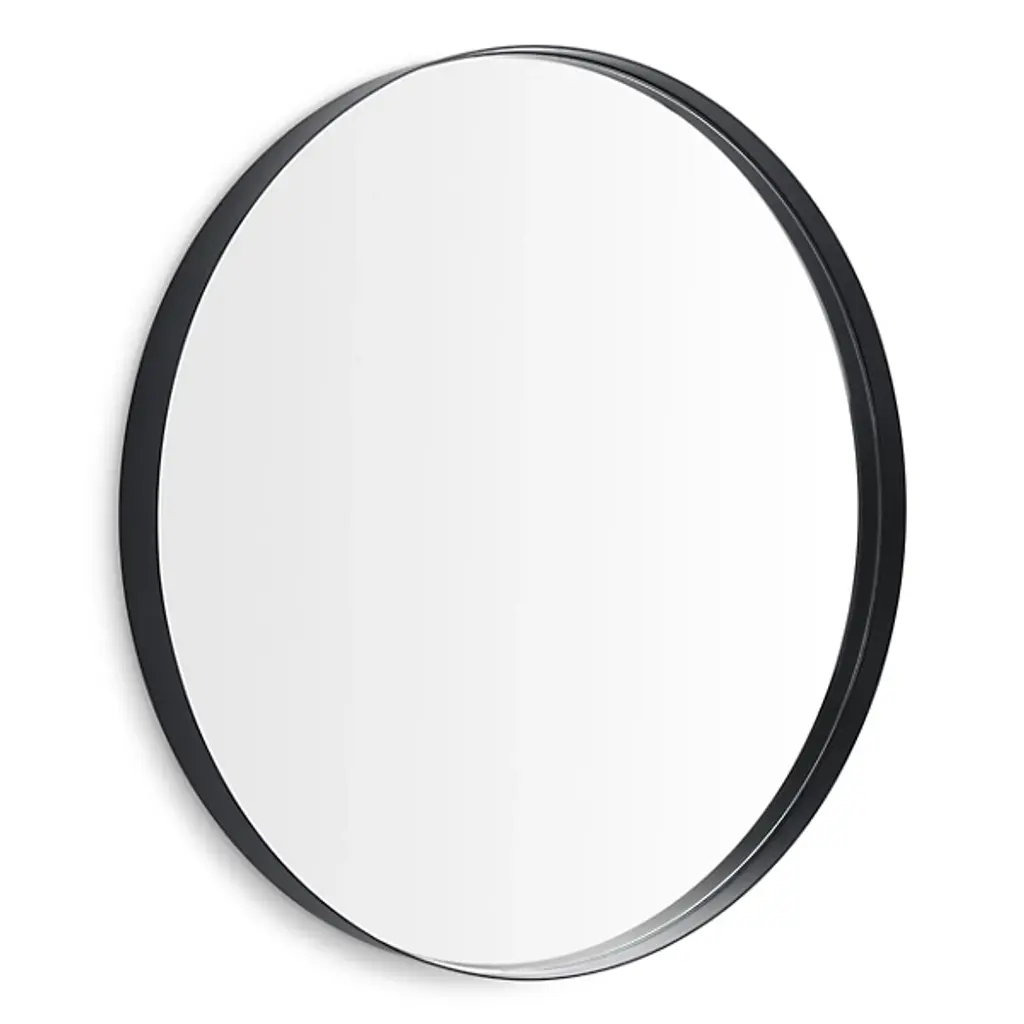 Instantly open up any space in your home with this minimalist wall-mounted mirror. Crafted of metal, this mirror strikes a pill-shaped silhouette. Its slender, clean-lined frame sports a classic finish, while the glass mirror within features a flat, for a brilliant reflection, letting the light bounce off to expand your space. Designed in a pill shape, this metal-frame mirror showcases in the three available satin finishes in black, brass, or silver. Mount this work of art in any room of your choice for added visual impact.Modern pill-shaped silhouette mirror is an architectural accent in your home. the mirror comes with a solid MDF board backing and three welded keyhole hanger for easy installationMirror is recessed into the ultra-thin iron sturdy metal frameperfect accent mirror to add visual interest and depth to your bedroom, living room, bathroom, entry way or any room!can be mounted both in a vertical or horizontal orientationmirror arrives at your home in one piece with no installation requiredglass insert measures 23.22 inch wide X 0.15 inch deep X 29.22 inch high