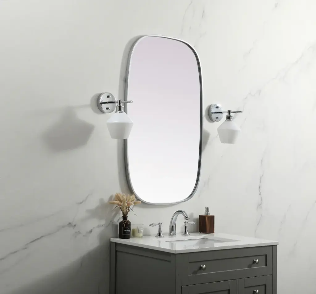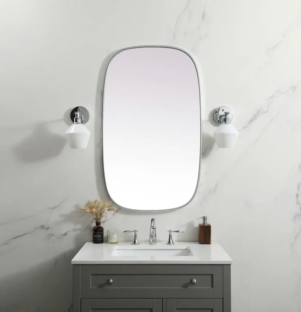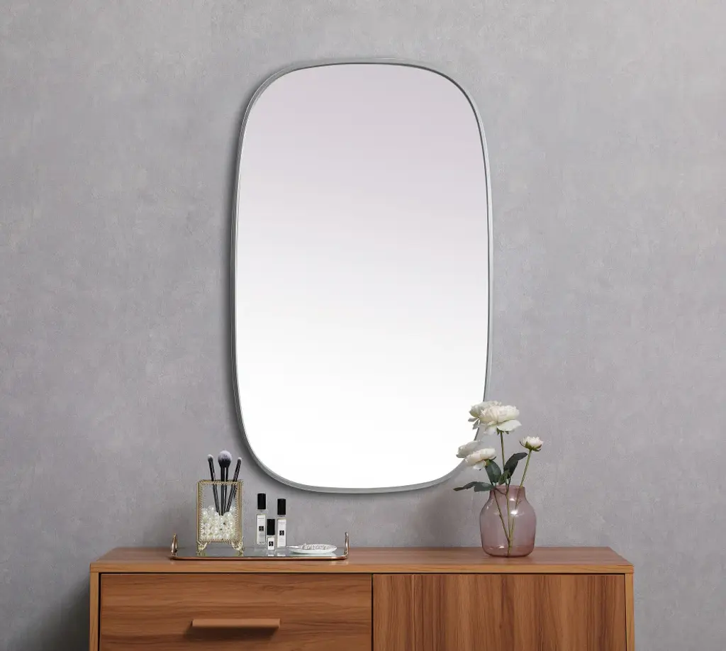 Crafted of metal, this mirror strikes a rounded corner silhouette. Instantly open up any space in your home with this minimalist wall-mounted mirror. Its slender, clean-lined frame sports a classic finish, while the glass mirror within features a flat, for a brilliant reflection, letting the light bounce off to expand your space. Designed in an oblong shape, this metal-frame mirror showcases in the three available satin finishes in black, brass, or silver. Mount this work of art in any room of your choice for added visual impact.Simple oblong silhouette mirror looks effortlessly chic and glamorousthe mirror comes with a solid MDF board backing and three welded keyhole hanger for easy installationMirror is recessed into the ultra-thin iron sturdy metal frameperfect accent mirror to add visual interest and depth to your bedroom, living room, bathroom, entry way or any room!can be mounted both in a vertical or horizontal orientationmirror arrives at your home in one piece with no installation requiredglass insert measures 23.22 inch wide X 0.15 inch deep X 39.22 inch high
