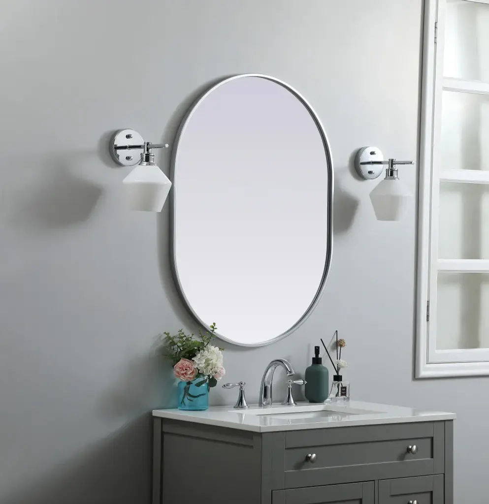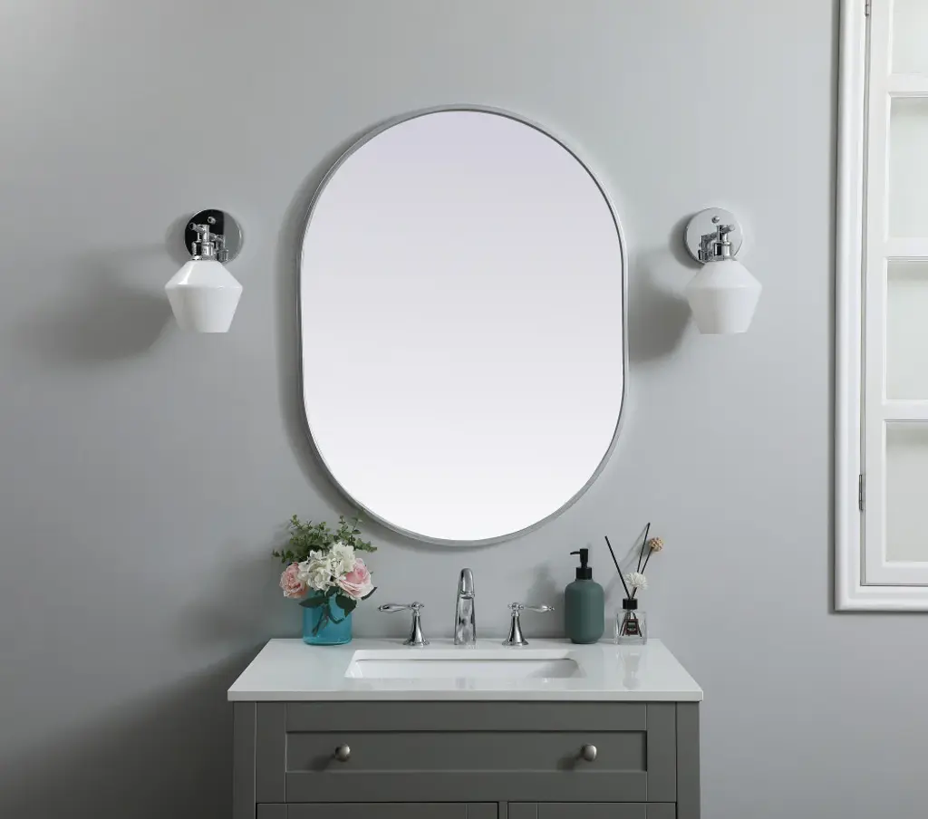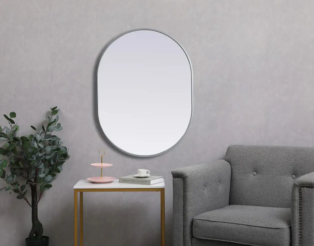 Metal Frame Oval Mirror 27x36 Inch, Silver