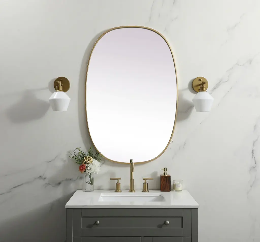 Metal Frame Oval Mirror 27x40 Inch, Brass