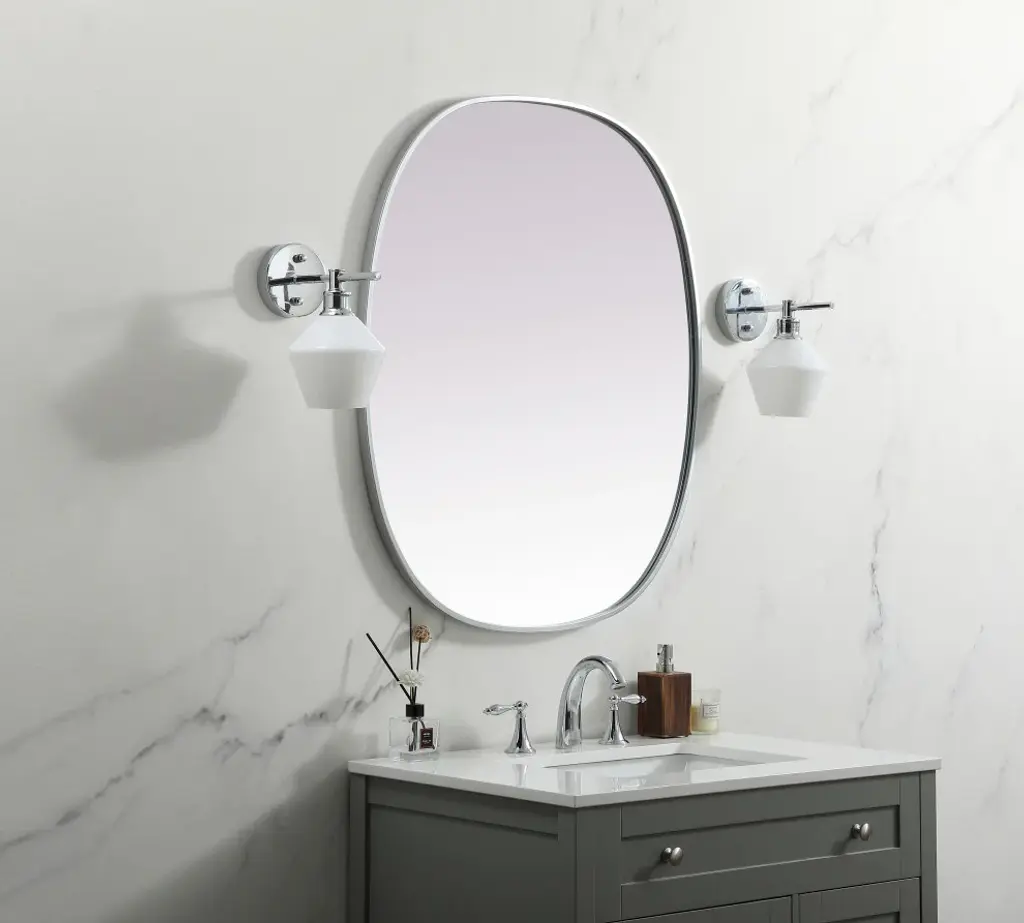 Metal Frame Oval Mirror 30x36 Inch, Silver