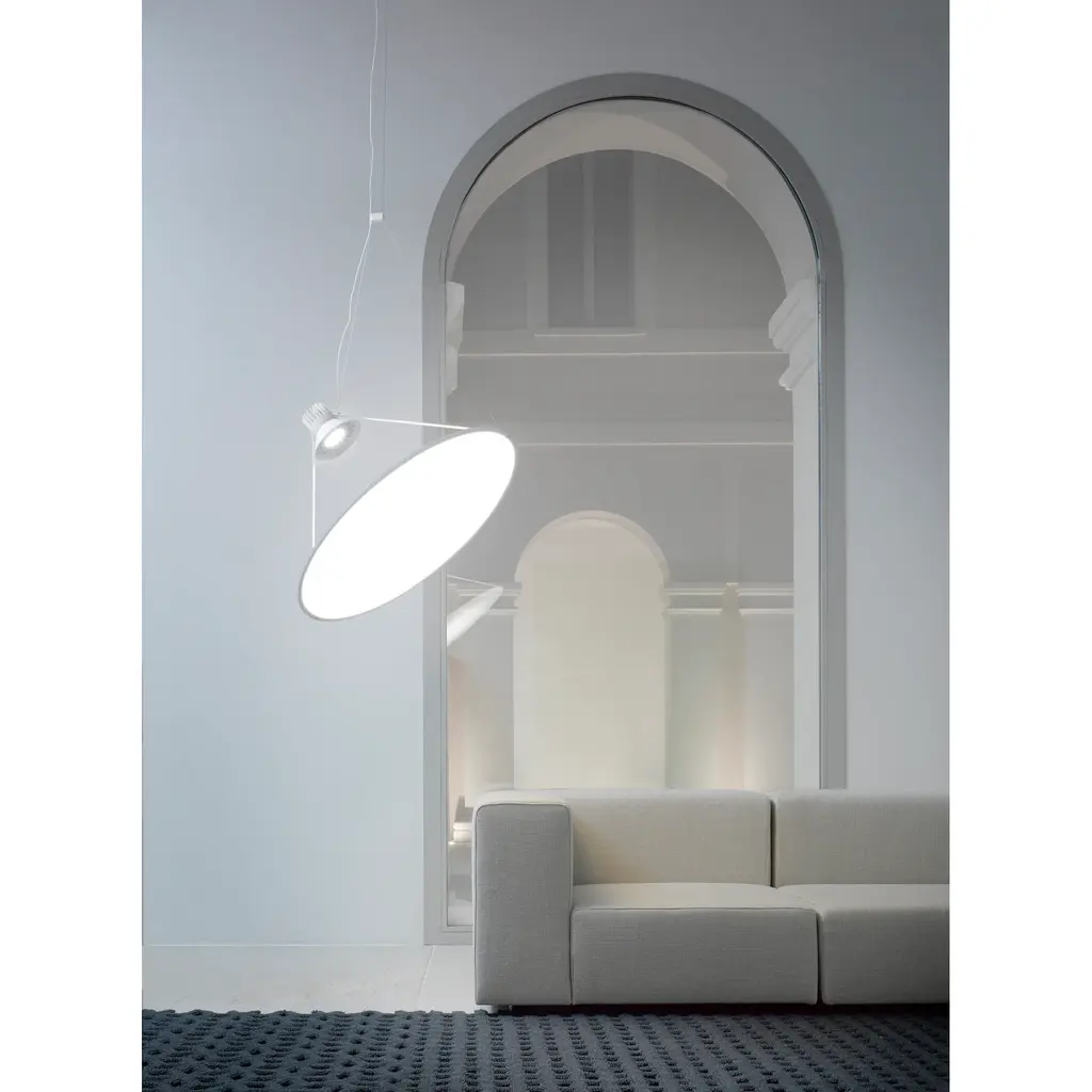 The Metallized Mirror Pendant Light Amisol by Luceplan is a statement pendant light that commands attention with its expansive form yet occupies minimal physical volume. A translucent white film or a metallized mirror membrane is stretched inside a circular aluminium profile.Like a solar sail, a powerful light source projects onto the large, weightless disk, creating either a soft diffusion or a reflective glow. Amisol's unique design offers an ethereal, contemporary touch that transforms lighting into an art form.