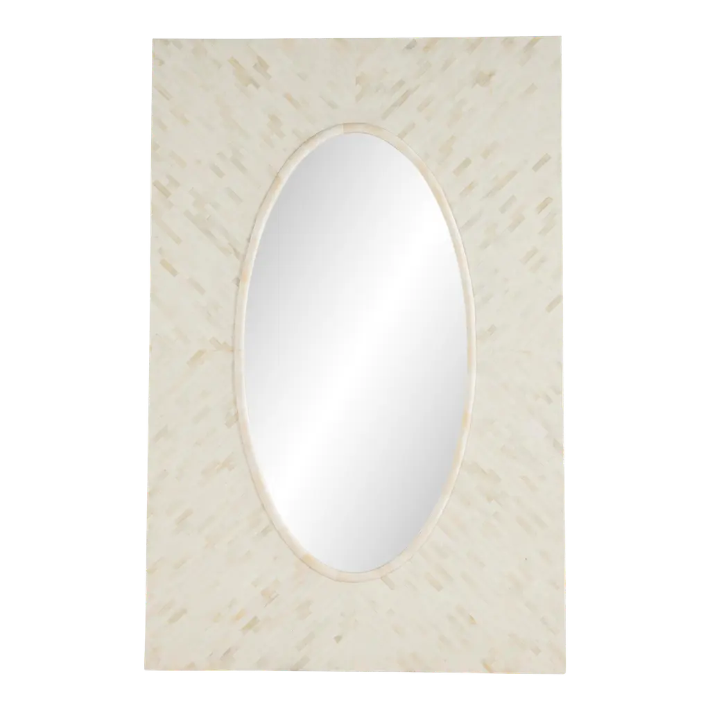This captivating, timeless "Metropolitan Collection" elipse design clear mirror will provide you with a luxurious, elegant look to accent any room or hallway in your home or office. Expertly cut and featuring beveled edges, this mirror will add light and beauty to adorn any wall wonderfully, wherever you choose to place it. - Ellipse style clear mirror - Mirror is made with beveled edges - Overall measurements: H36 x W28 x 1/4" deep - Product weight: 13.64 lbs.Features exquisite beveled glassclear glassDesigned for the bathroom and versatile enough to fit in any room