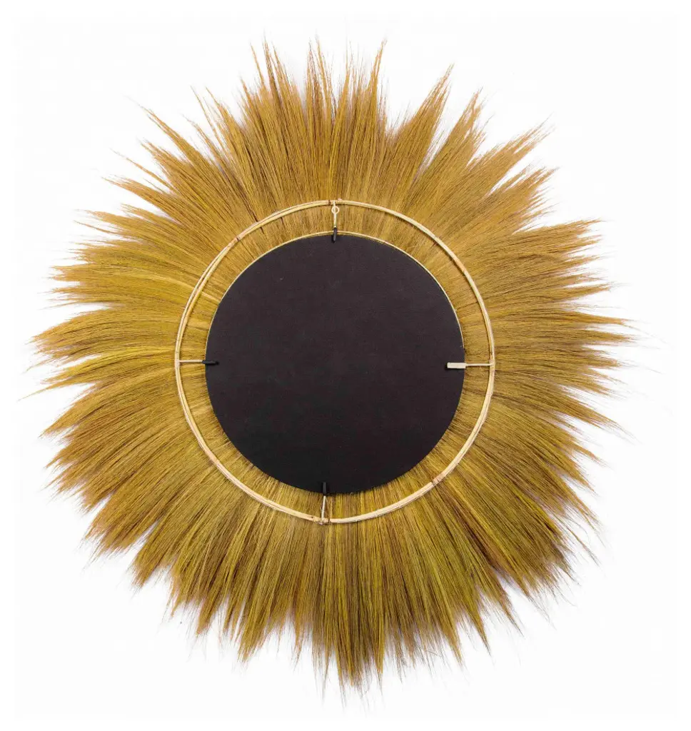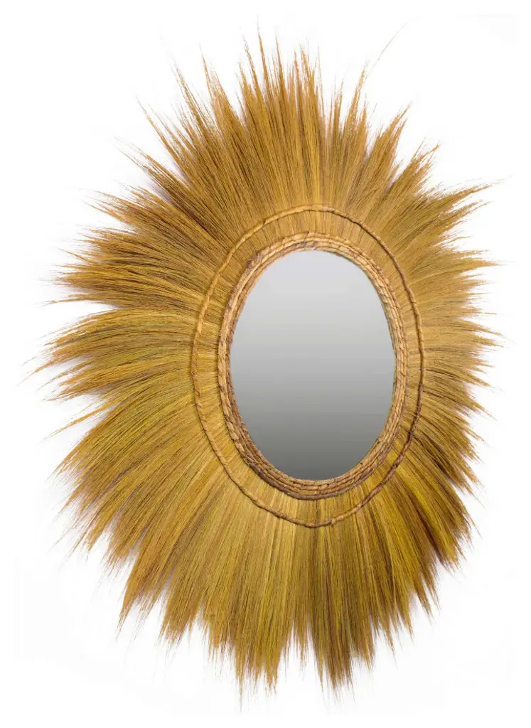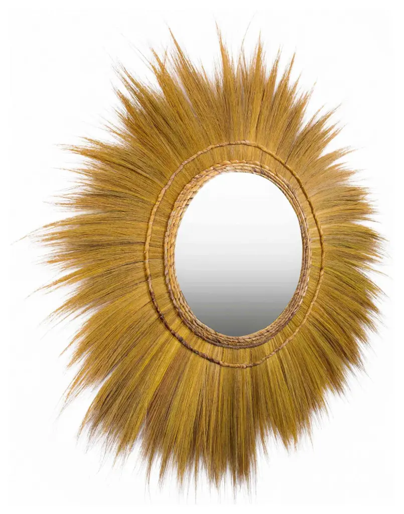Handcrafted by skilled artisans, the Mettu Mirror is that femme-safari piece you absolutely need. With its palpable-cool style and luxurious texture, this mirror will make a beautiful statement in your home.Handmade by skilled furniture craftsmenMade using natural materials, color variations are to be expectedReady to hangProduct Materials : Rayung GrassOverall Product Dimensions : 51.2"W x 1.6"D x 51.2"HProduct Weight : 5.5 LBs