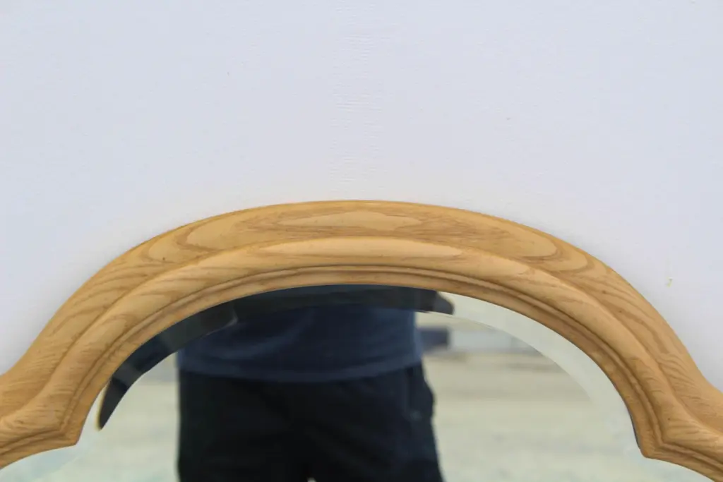 Mid-century walnut arch shaped wall mirror Dimensions: 23"Width x 2"Depth x 44"Height See pictures and condition for reference. If you have any question, please let us know, thank you.
