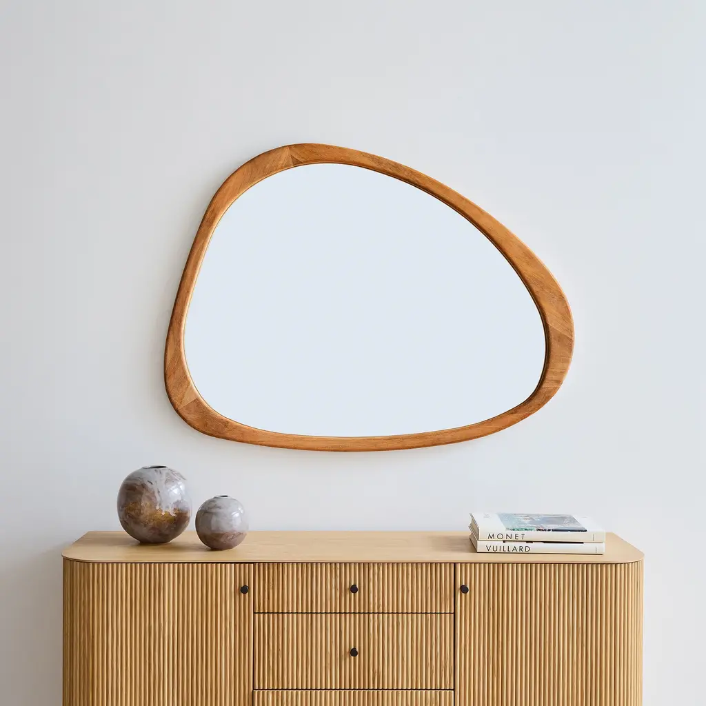 Mid-Century Asymmetrical Wood Wall Mirror