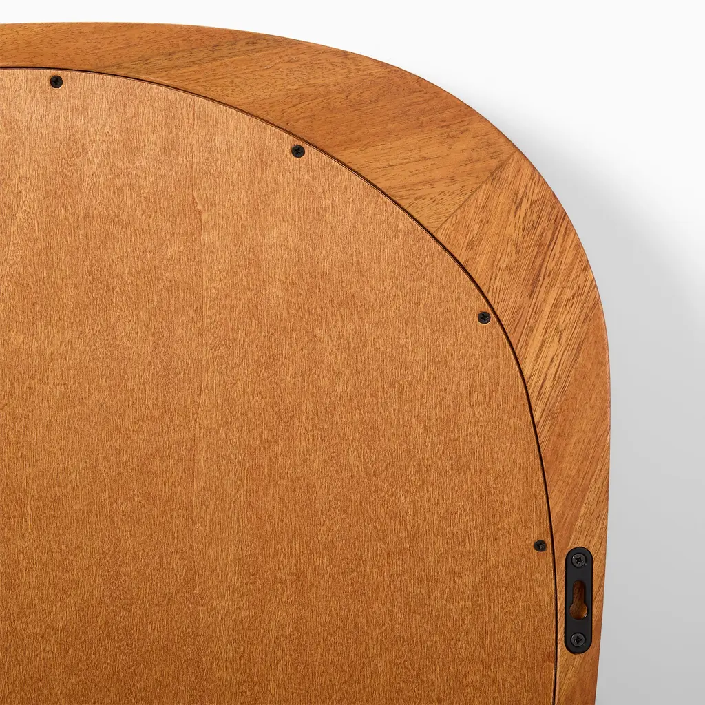 Inspired by Italian mid-century design. Curved silhouette adds light and movement. Great for above sofas or entryways. The wood frame is sustainably sourced.
