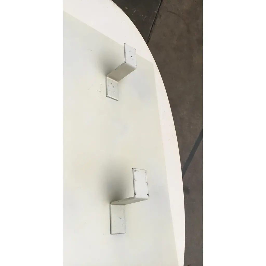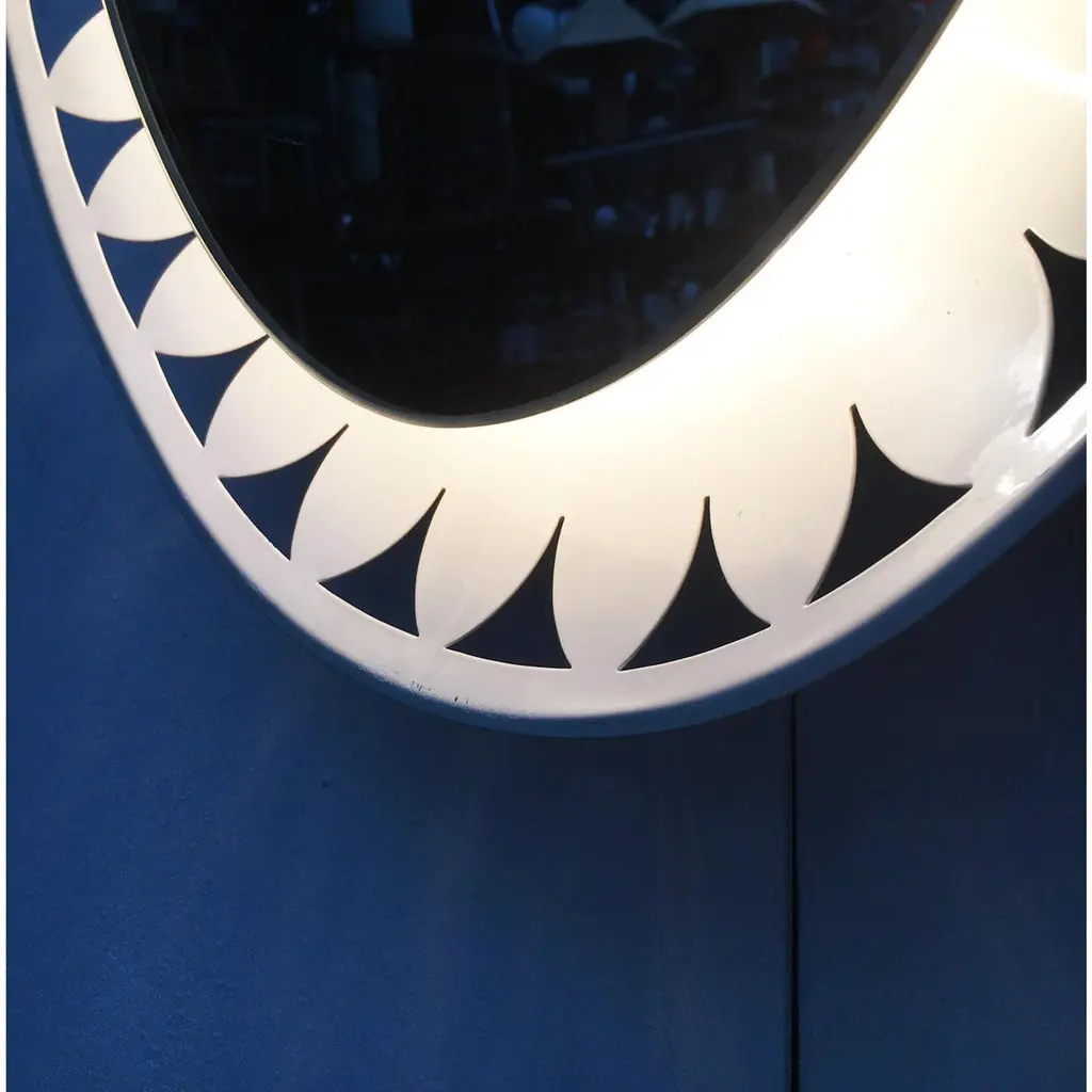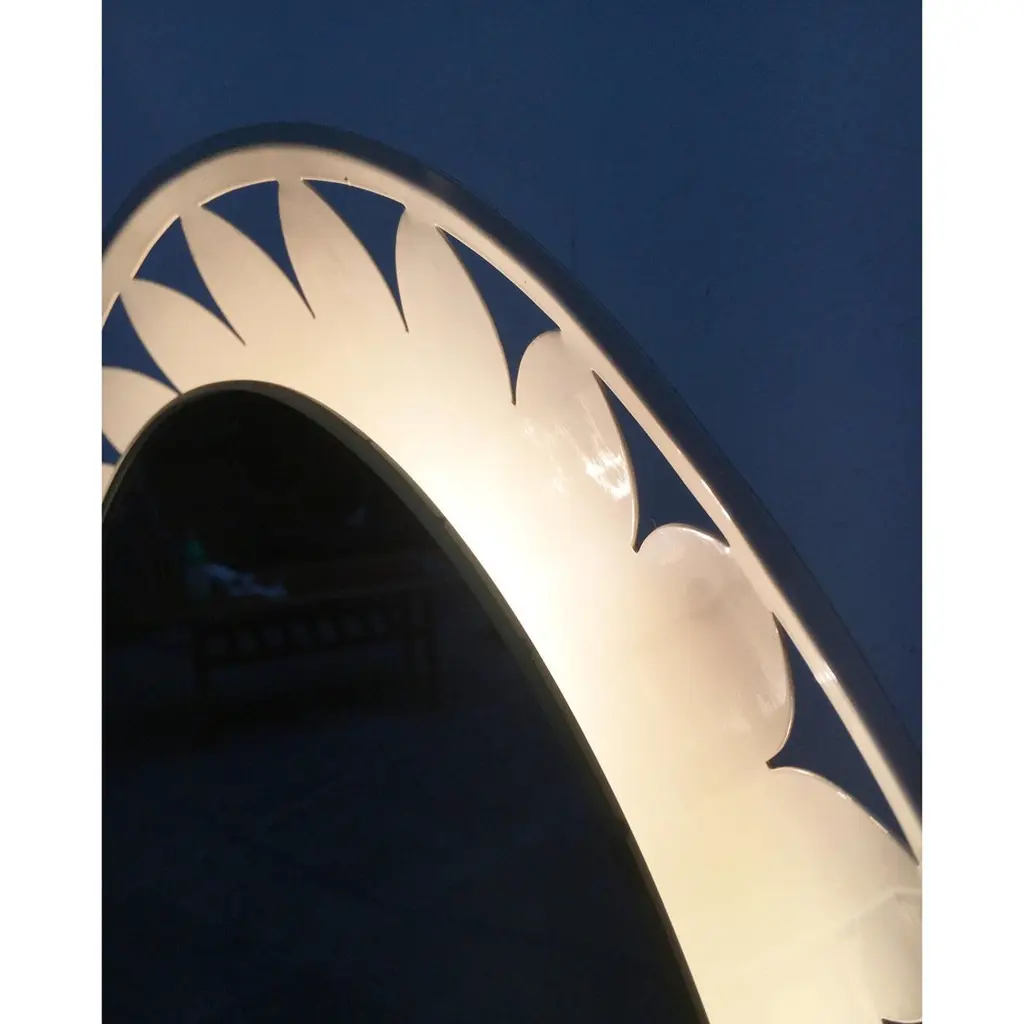 The mirror consists of two elements, the tub of metal for wall mounting and as a reflector for the emerging light and the mirror surface. The reflector tub is made of painted metal and has a reduced ''floral'' pattern around the edge. The pattern is punched out of the plate. The actual mirror surface is simply hung from the front with 2 hooks. Thus, the illuminants can be changed without any problems. Have official proof of authenticity such as vintage catalogs, designer records, or other literature sources.Additional information:Materials: MetalStyle: Mid-Century ModernPeriod: 1960sCountry of Origin: GermanyColor: WhiteItem Type: Vintage, Antique or Pre-ownedDimensions: 18.5ʺW × 2.36ʺD × 29.13ʺHCondition: Good Condition, Unknown, Some ImperfectionsCondition Notes: Patina Consistent with Age and Use