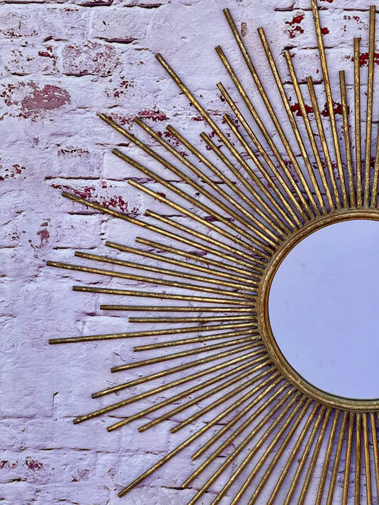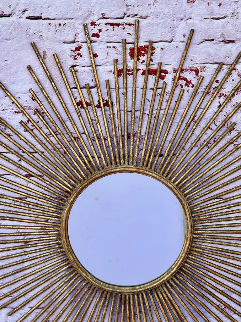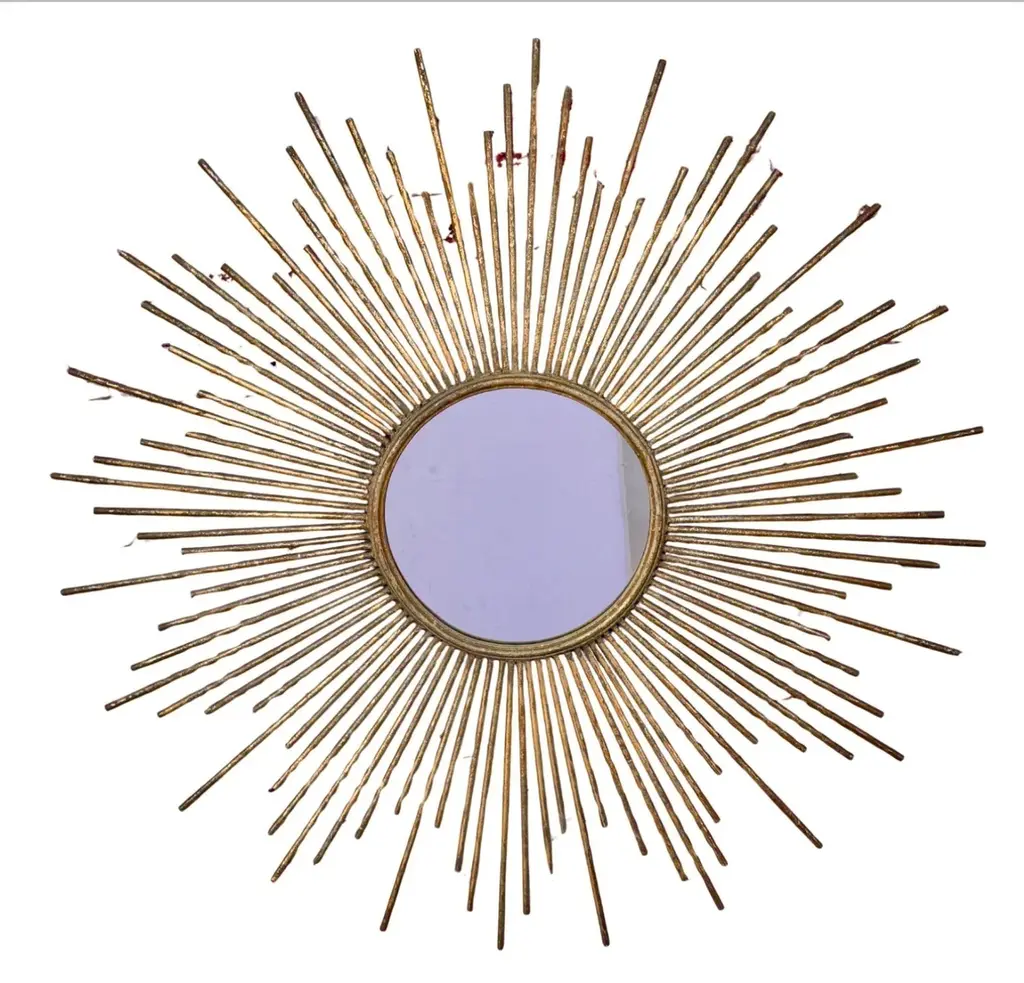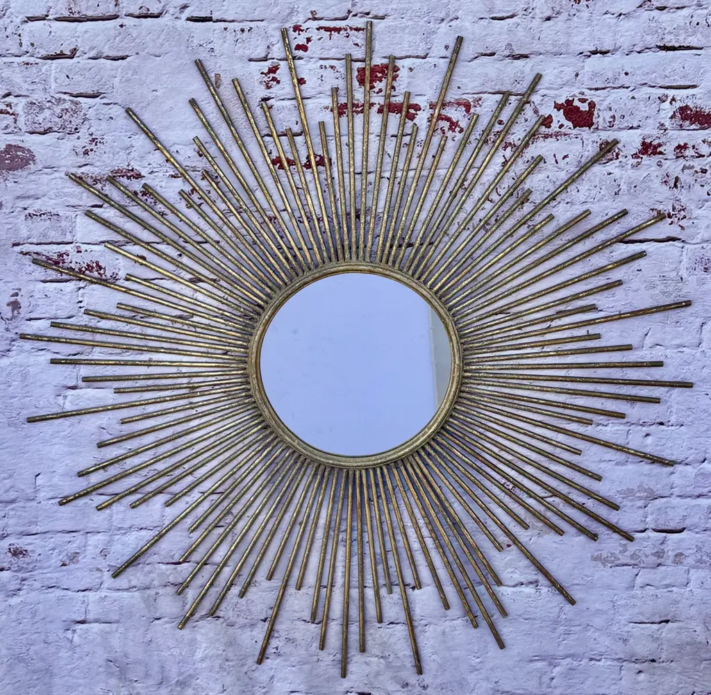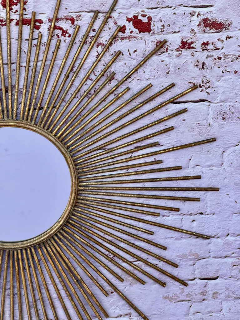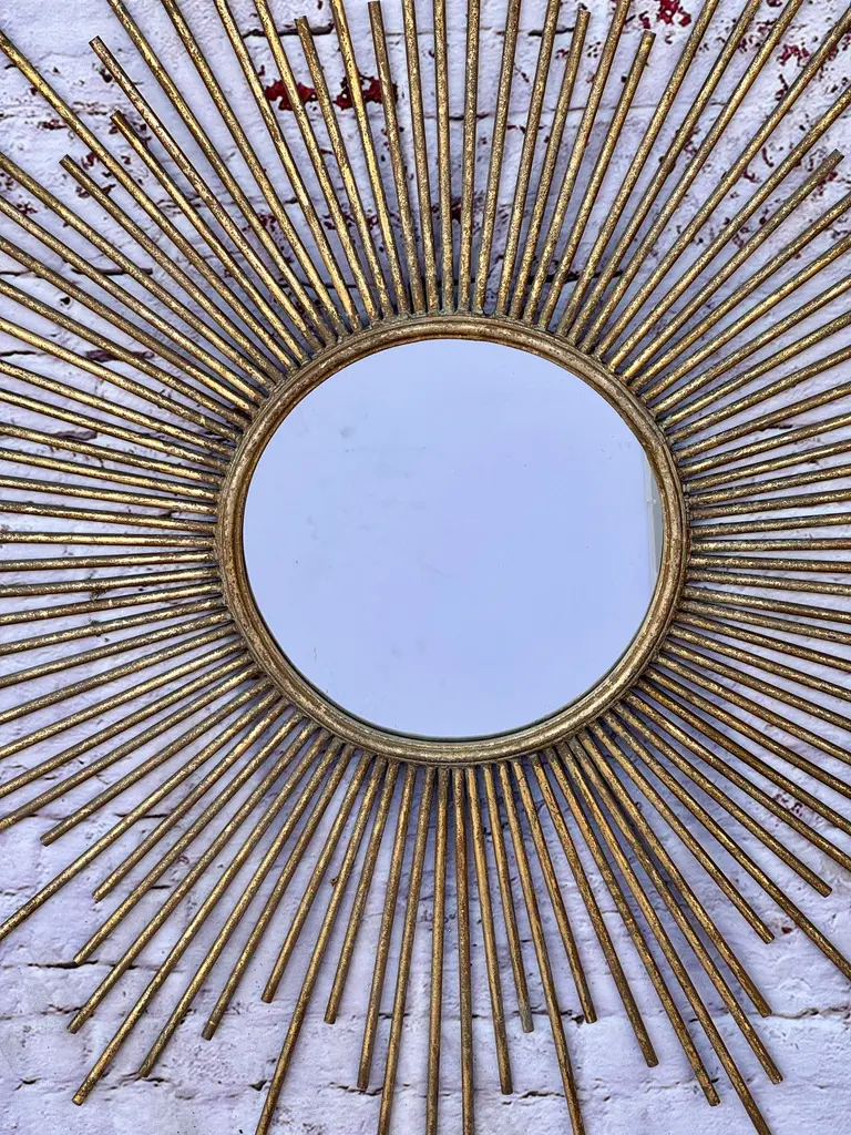 Mid-Century Gilt Metal Sunburst Convex Mirror
