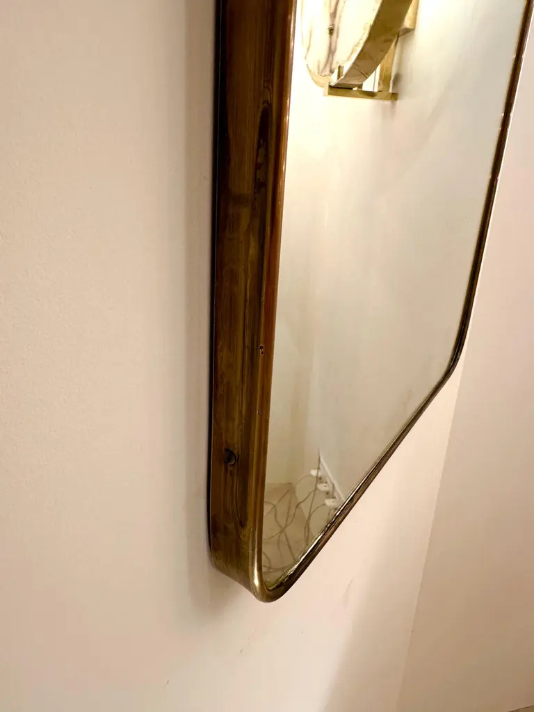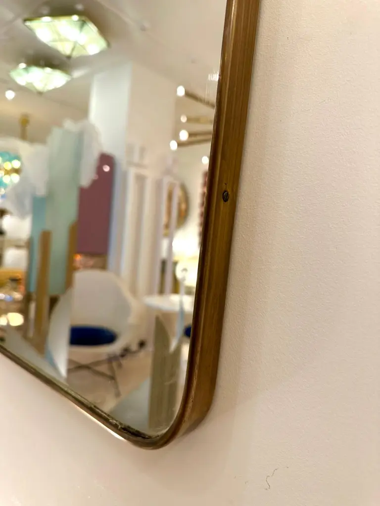 Mid-Century modern rectangle brass frame mirror. Nice patina. Gio Ponti placed this style of mirror in his interiors during the 1950s and 1960s.Price listed by mirror. In sale separately.For the pair set or 2 please indicate quantity X2 at checkout.