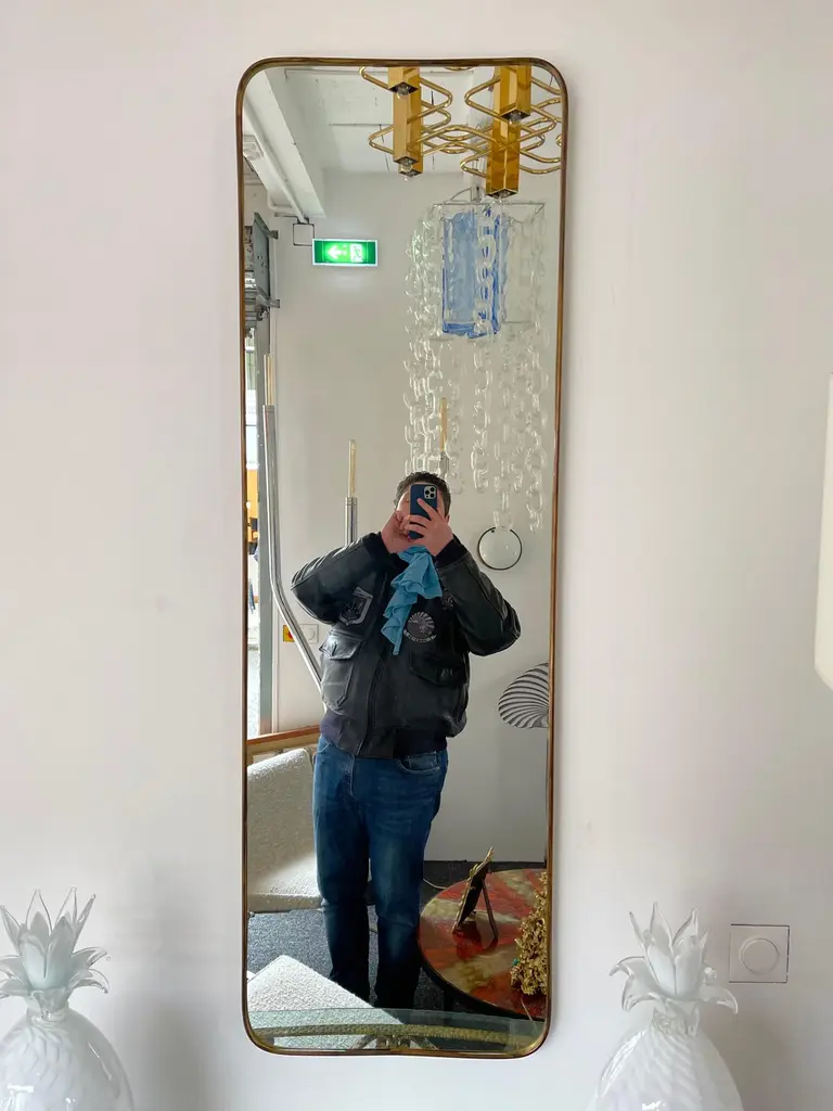 Mid-Century Modern Brass Frame Mirror, Italy, 1950s