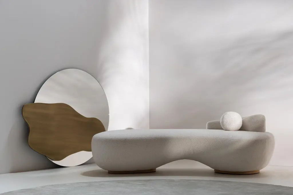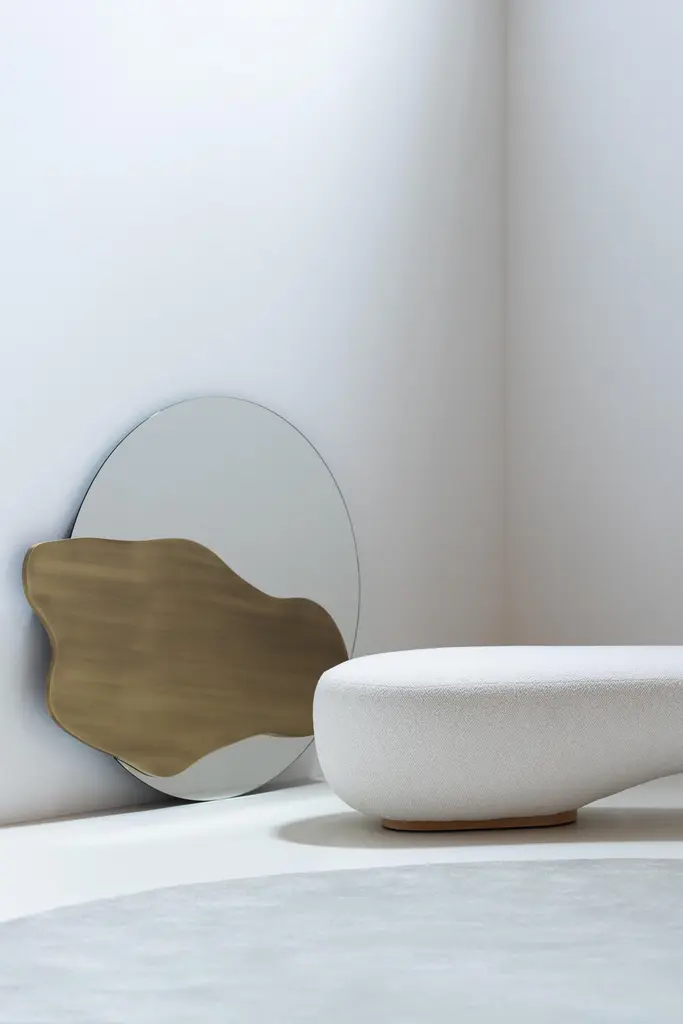 Mid-Century Modern Kea Wall Mirror, Modern Collection, Handcrafted in Portugal - Europe by GreenappleThe Kea wall mirror captures the raw beauty of the Greek island that inspired it, where land and sea merge in perfect harmony. Its asymmetrical design reflects the island’s coastline, with organic contours that evoke the ebb and flow of the Aegean waters. A striking interplay of shapes and finishes creates depth and movement, transforming reflection into an artistic experience. More than a wall mirror, Kea is a statement piece—where nature’s elegance meets organic design.The Kea mirror features an oval clear mirror, accented by an organic brushed and burnished antique brass detail, sealed with a high-gloss varnish.The Kea wall mirror can be customized in terms of dimensions, materials and finishes.Kea Wall Mirror Material CodesME032 Brass, Brushed, Burnished, Varnished, Antique-Brass, MatteMI001 Mirror, ClearHandcrafted in Portugal - Europe by GreenappleUnique by design, Crafted by peopleGreenapple transforms contemporary spaces into exclusive narratives of design and craftsmanship. From custom-made furniture to bespoke interiors, each creation is a timeless work of art, shaped by master artisans who honor centuries-old techniques.Founded in 2005 by Sérgio Rebola and Rute Martins, Greenapple has earned global recognition among high-end clientele and leading design firms. While Rute designs each unique piece, Sérgio ensures uncompromising quality from design to production and from production to your home. We provide a seamless experience, offering short production lead times, worldwide delivery within 7 to 10 days, and white-glove service upon request.For U.S. clients, we can handle customs clearance, and offer white-glove service as well upon request.Wall Decor, Wall Art