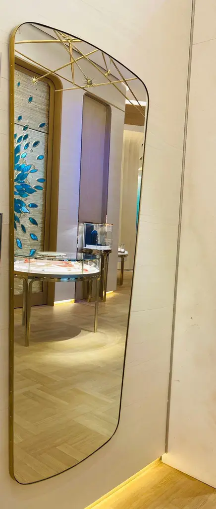 “Swing ”Trapezio small. The contemporary rectangular mirror with rounded edges and embossed brass frame is an exceptional choice for those seeking a touch of elegance and refinement in their decor. Its small size of 14x23" ( 35/30 x 60cm)makes it a perfect addition to a wall in need of a subtle yet sophisticated touch.The sleek and minimalist design of the mirror gives it a contemporary look that is suitable for a wide variety of spaces, from bedrooms to hallways and living rooms. The embossed brass frame adds texture and a sense of opulence that will perfectly complement any modern or contemporary decor scheme.In essence, the contemporary rectangular mirror with rounded edges and embossed brass frame is a high-end decor choice that is sure to elevate the look and feel of any space in your home or office. Its refined aesthetics and upscale materials are quintessential of the luxurious lifestyle.Fitted with professional plates not visible once installed for an easy and safe installation. Supplied with all accessories, including screws and wall plugs.Handcrafted in Spain.
