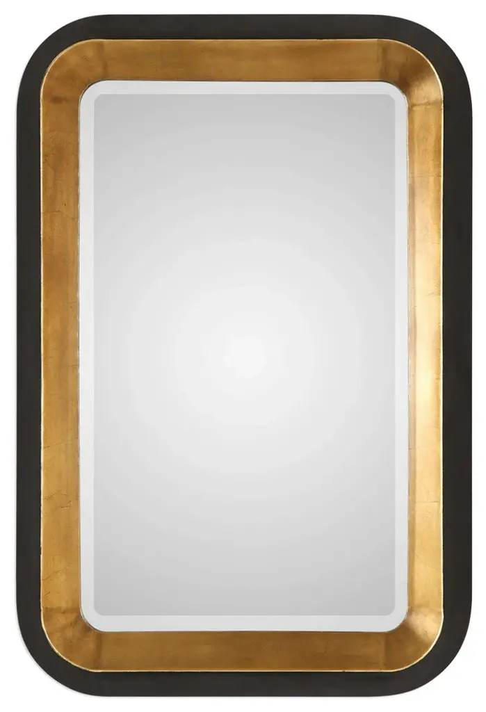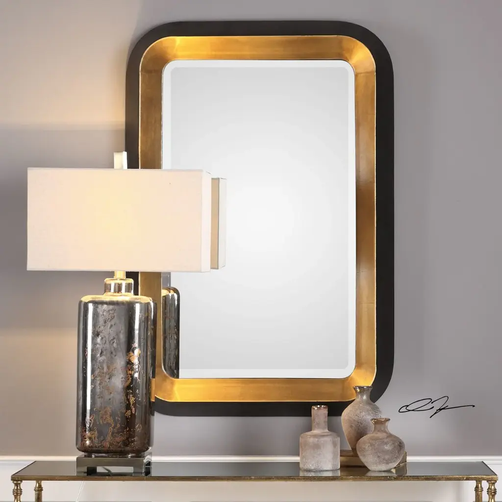Midcentury Modern Gold Black Vanity Mirror, Glam 42" Sculpted Rectangle