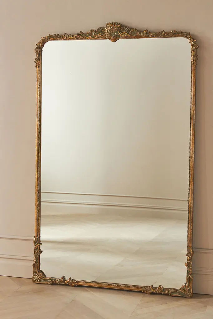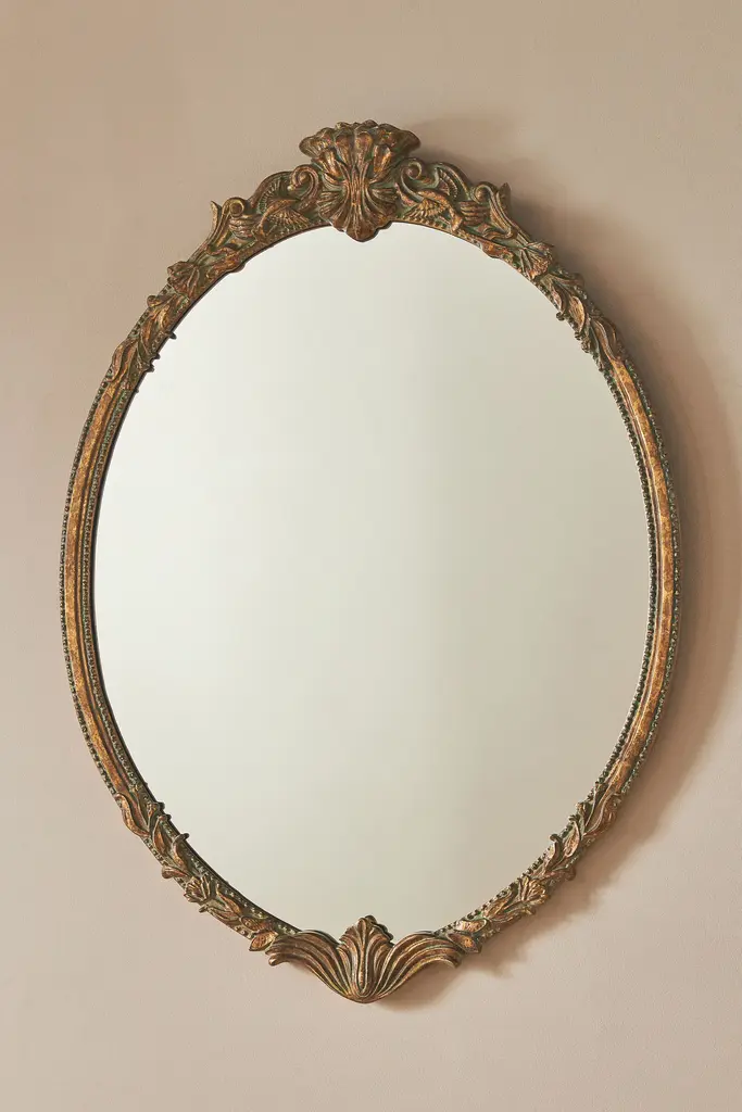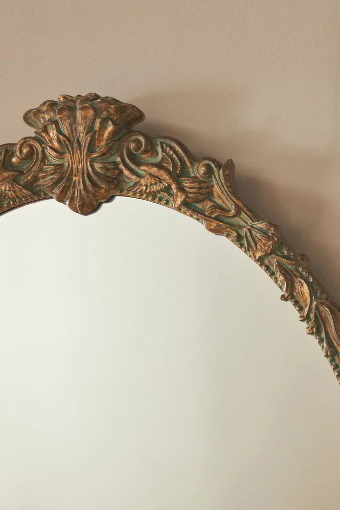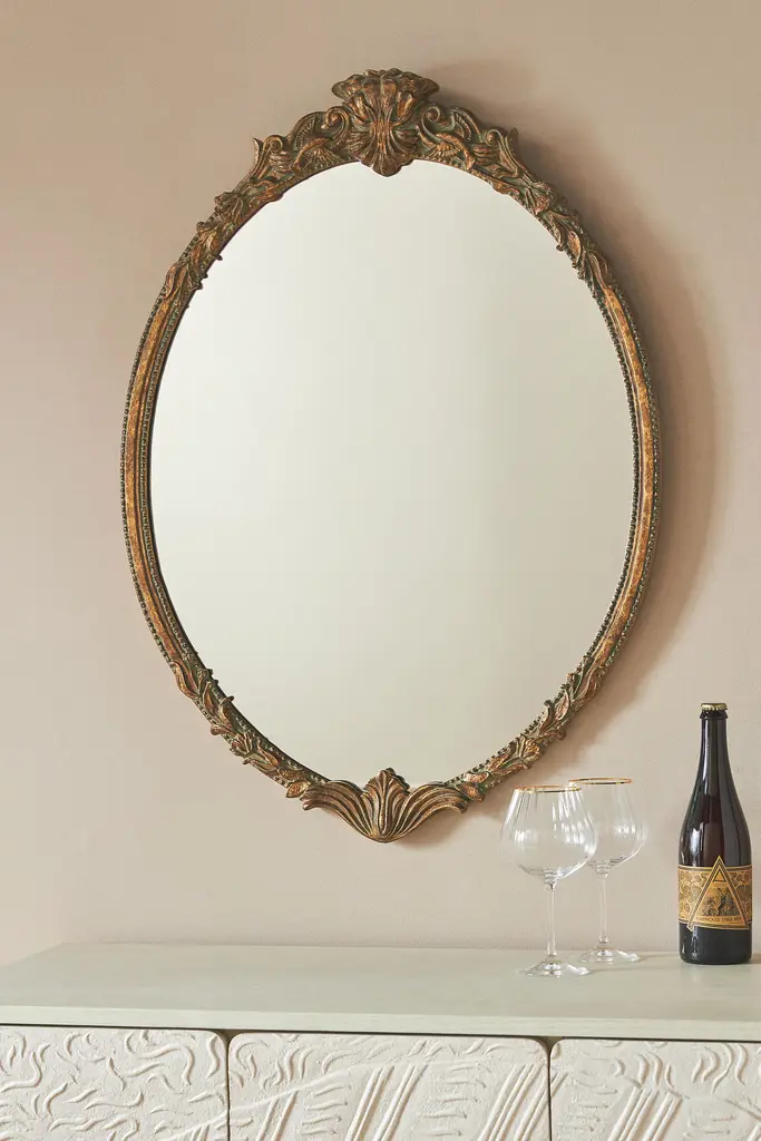 Set in an intricately crafted frame, this antique-inflected piece displays age-old sophistication wherever it's placed.
