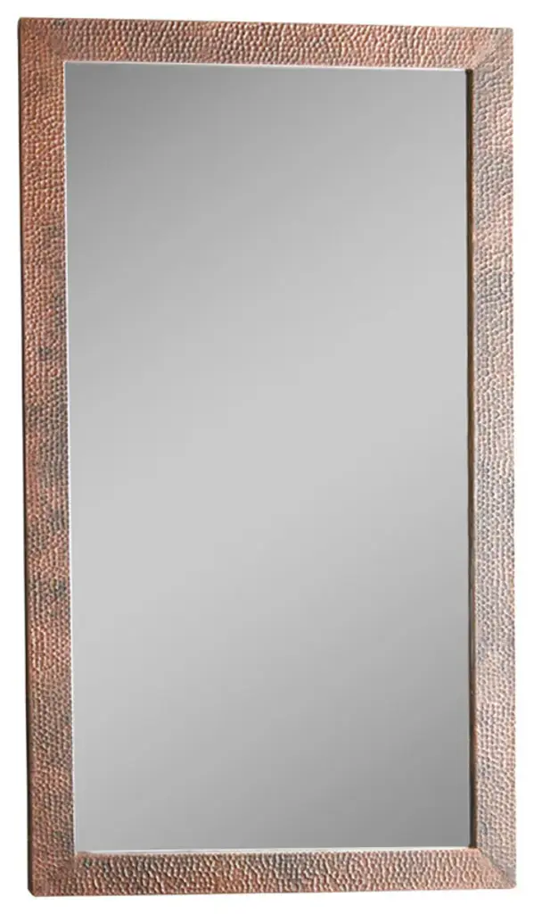 The Milano Mirror''s mottled finish and rich texture evoke a soft, contemporary aesthetic. This artisan-crafted mirror is forged of high-quality recycled copper. Its hand-hammered finish can be displayed on its own as a decorative accent mirror, or paired with a copper sink in a bathroom setting. Due to their handcrafted nature, no two products will be exactly the same and may vary in finish, texture and other details.Outside Dimensions: 28"x40"x1"Features:-Hand-hammered surface provides beautiful texture and visual impact-Constructed of post-consumer recycled copper providing durability and a rustic appearance-Mirror features beveled glass-Wall-mounted installation-Mounts both horizontally and vertically-French cleat included for easy installation-Covered under Native Trails limited lifetime warranty