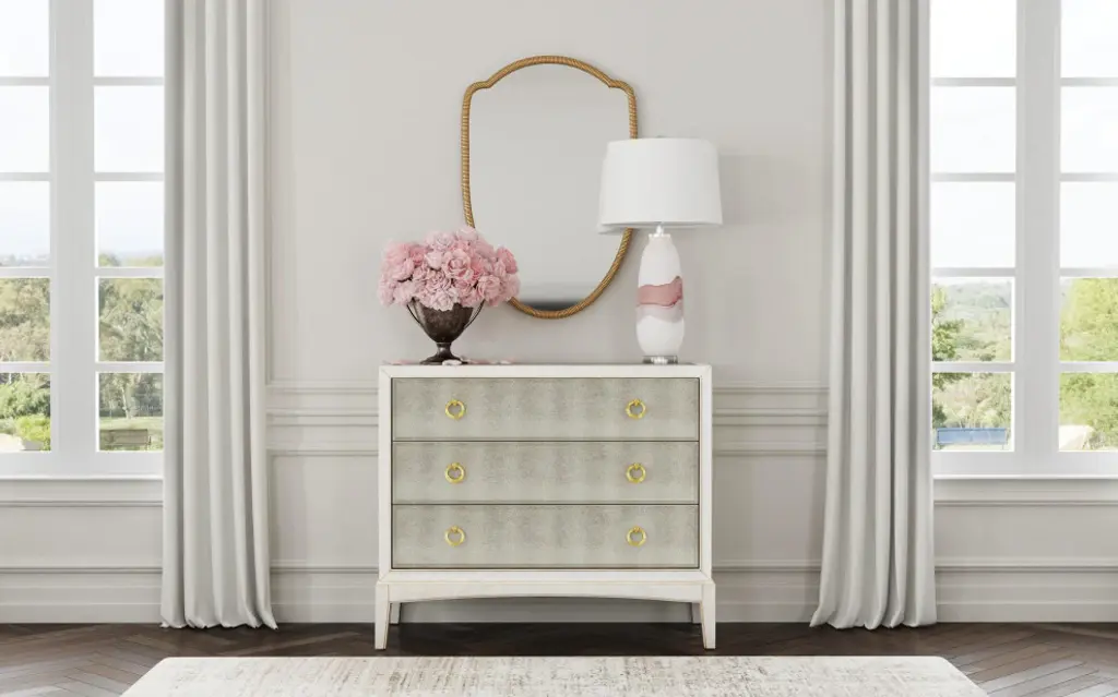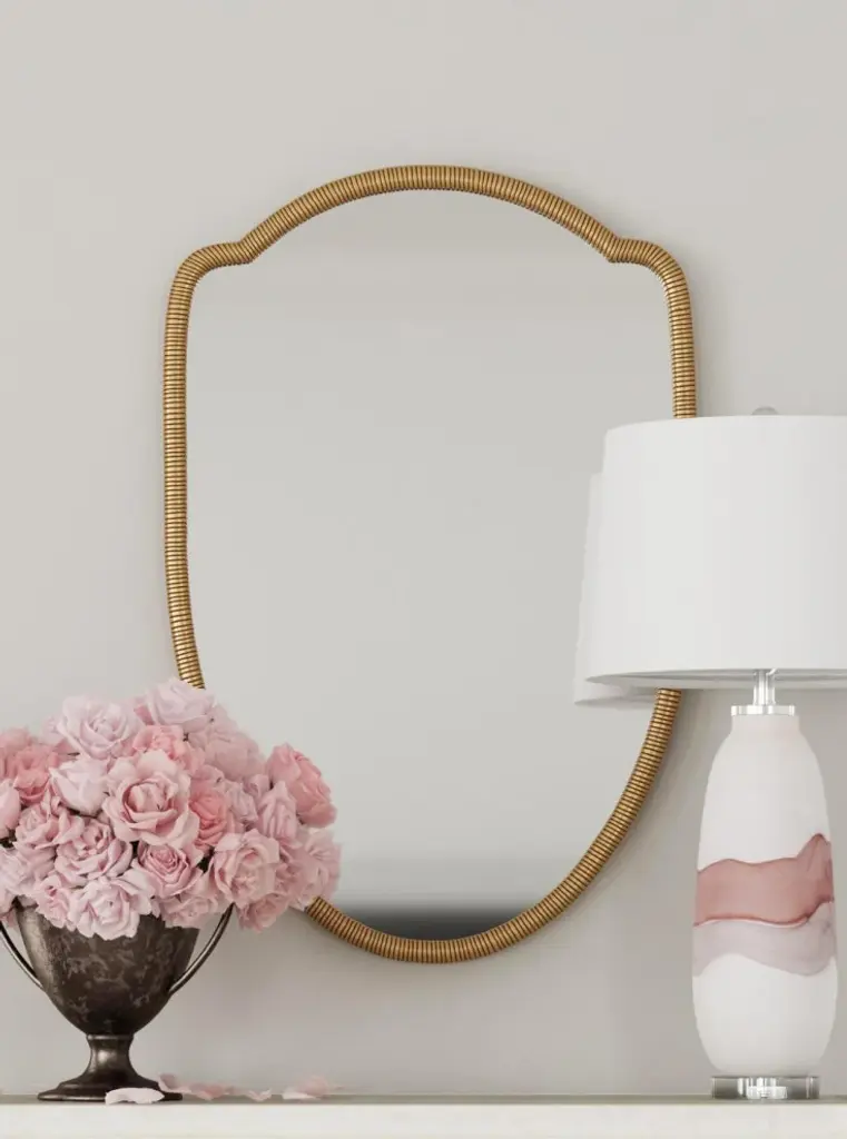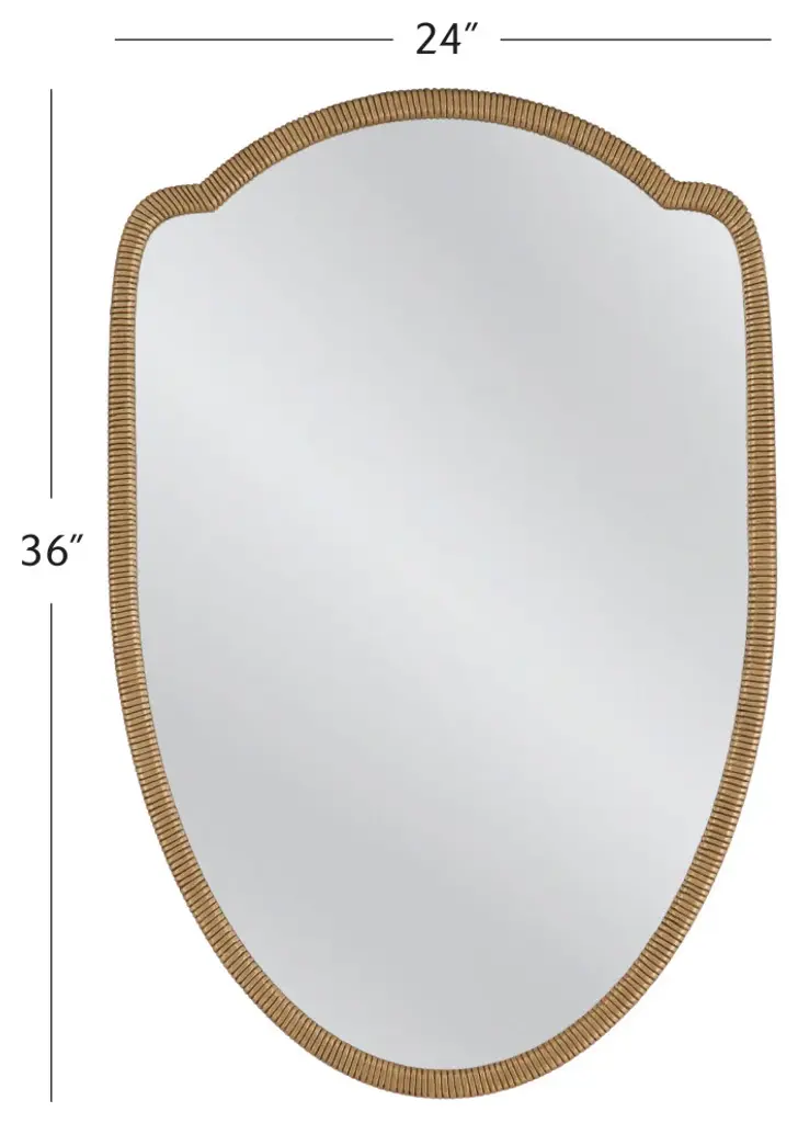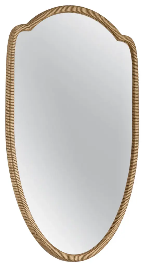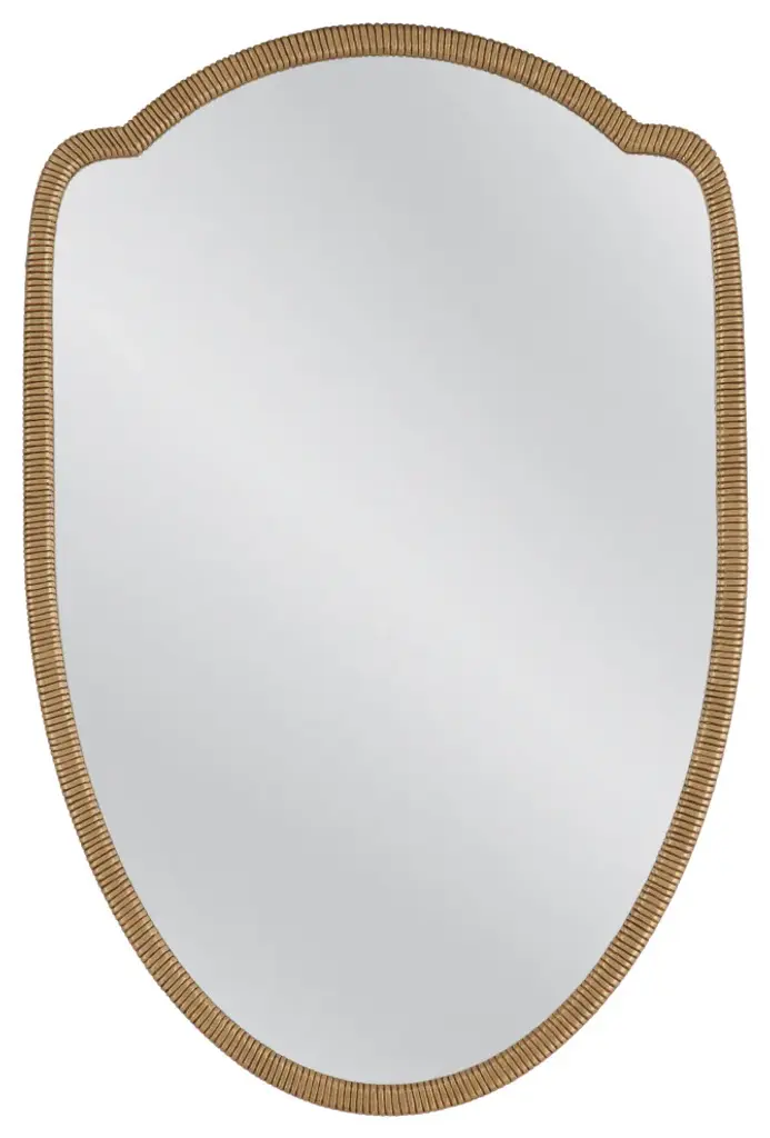 The Miles Wall Mirror boasts a distinctive shield-shaped design, complemented by a luxurious brass finish. Its modern aesthetic adds a touch of sophistication to any room, while the sturdy wood construction ensures durability and reliability. With its elegant charm and timeless appeal, this mirror is sure to be a standout piece in your home decor ensemble.Features:Exudes modern sophisticationShield shape adds a unique touch to any décorLuxurious brass finish brings sophisticationCrafted with attention to detail for timeless appealFor over a century, Bassett Mirror has been synonymous with style and quality, transforming homes with its sophisticated and timeless designs. With a wide-ranging collection of furniture, lighting, mirrors, and art, Bassett Mirror seamlessly blends modern style with classic appeal. From rustic modern to luxe glam, each piece is thoughtfully crafted to inspire and elevate any space. Committed to exceptional value and customer care, Bassett Mirror makes it easy for homeowners to create beautiful, personalized interiors with confidence.