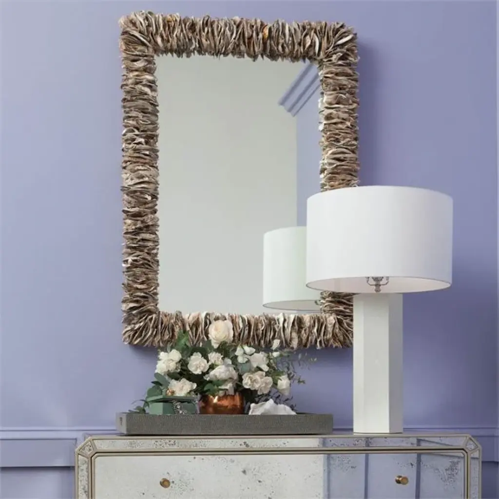 Simple yet elegant, this vintage inspired mirror is crafted from raw raffia. Featuring a natural finish + nailhead detail. Ready to complement the decor in any room.