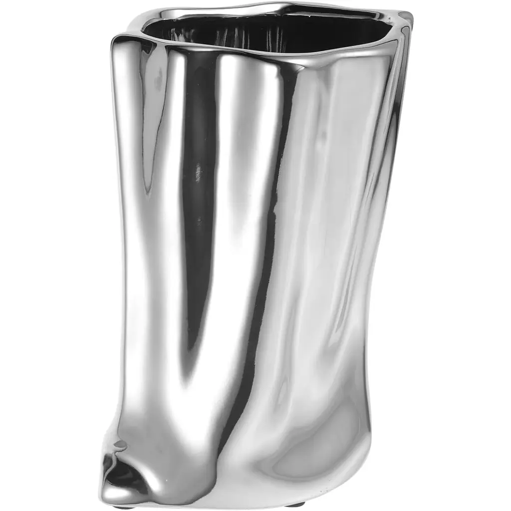 Mini ceramic vase with reflective mirror exterior. A special piece for your home and a perfect gift which is not too big. Height is 17cm high and 13.5cm width. Base has rubber stubs for grip.