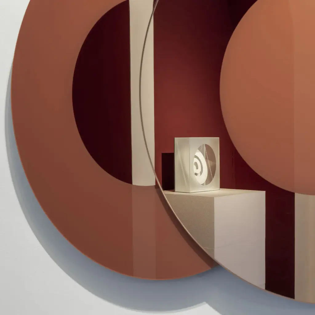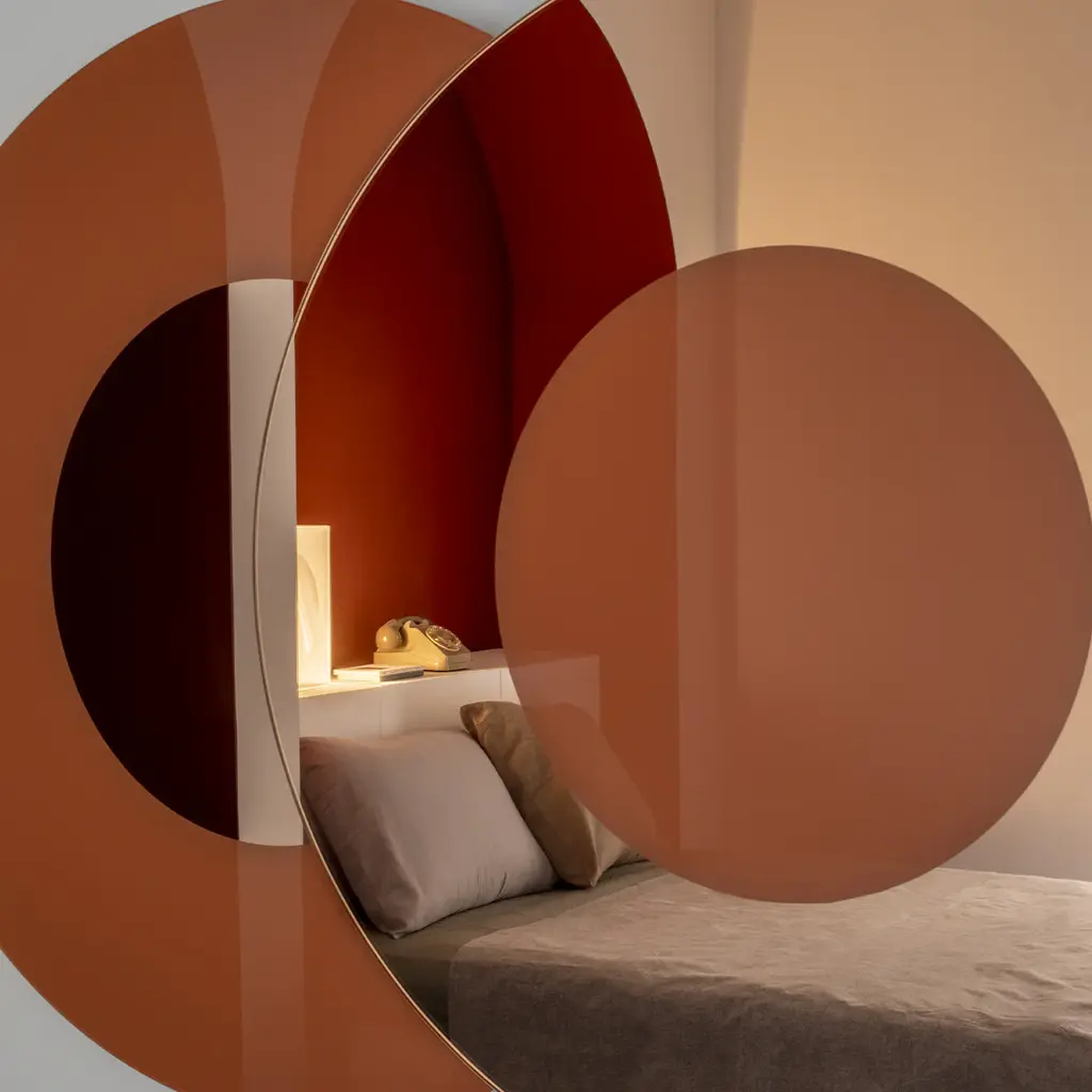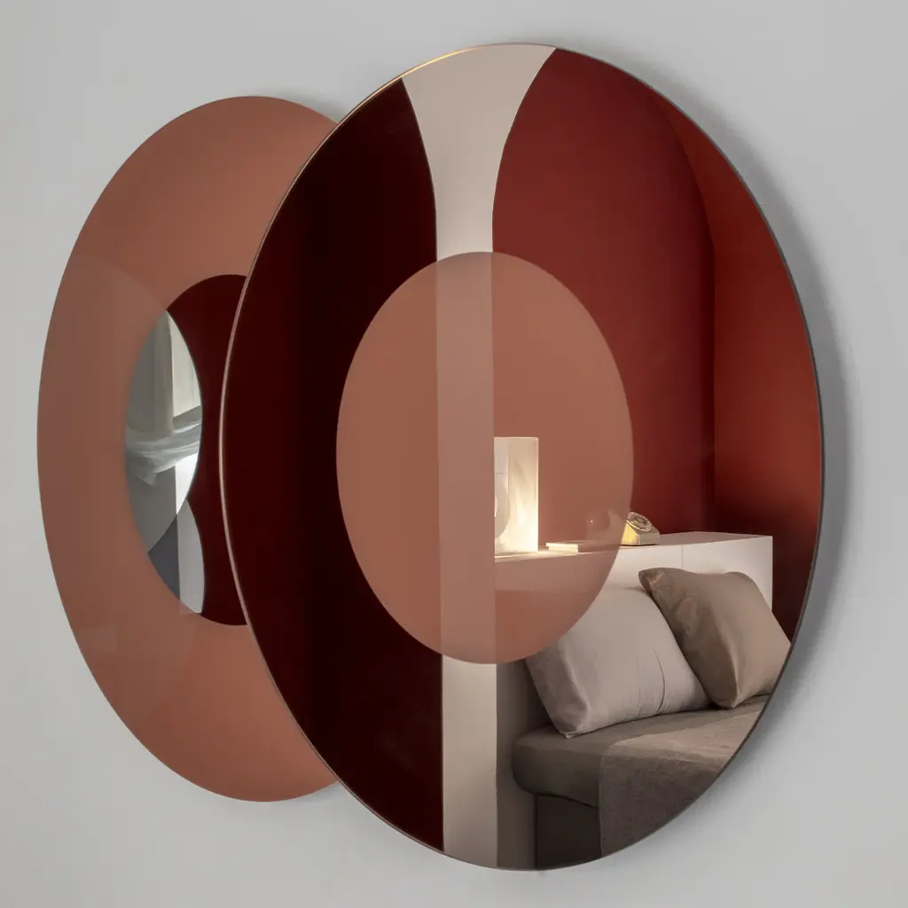Introducing a new collection in float glass, our focus remains on large decorative wall mirrors and reflective tabletop sculptures. These pieces in the Vetrografica collection showcase customizable functionalities, highlighting our commitment to exploring chromatic and texturing capabilities in colored float glass and tinted mirrors.