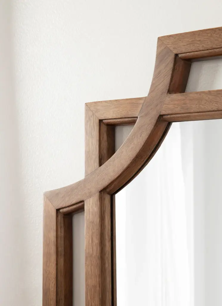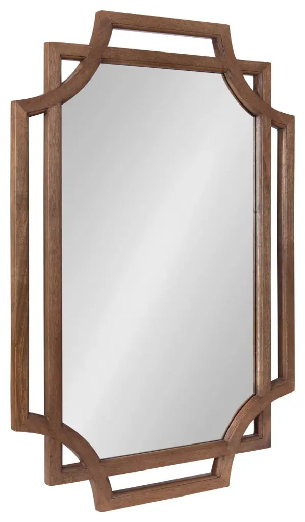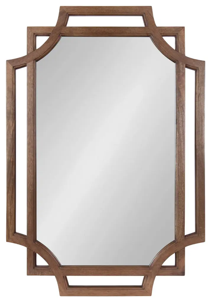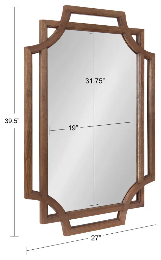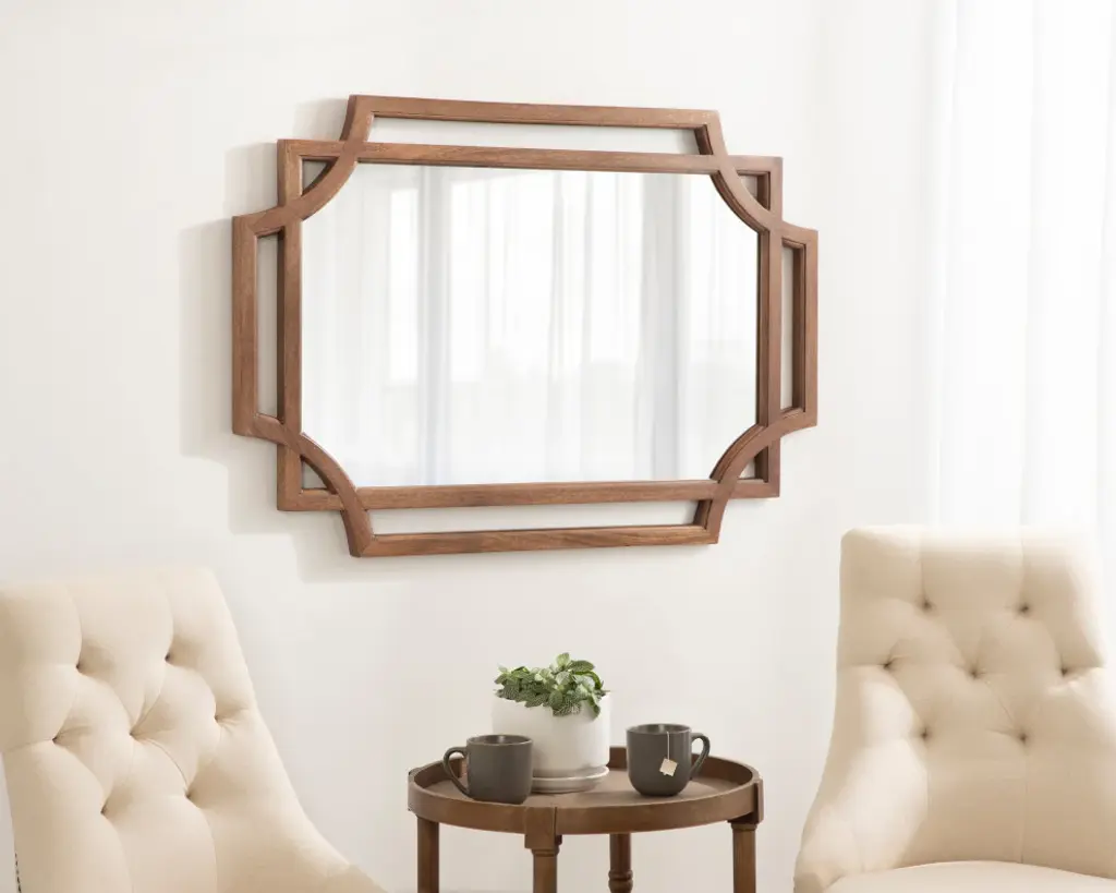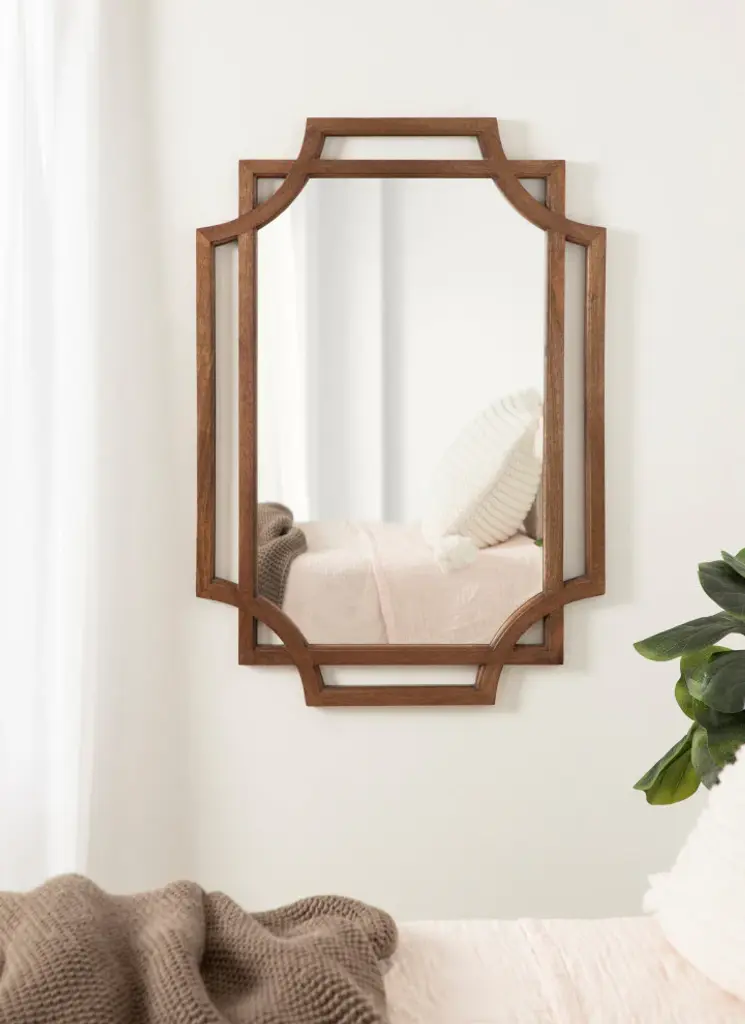 The Minuette wall mirror is the perfect way to expand your smaller spaces while also adding a timeless and beautiful accent piece. It features an interlocking geometric frame that creates an eye-catching statement piece your friends and family won''t want to miss. The Minuette is handcrafted in India from rich mango wood, making each piece''s frame look distinct in finish and woodgrain. With its unique natural wood finish, this decorative accent looks perfect in any space of your home, including the bedroom, bathroom, entryway, dining room, or kitchen. It looks fantastic as a piece of decor, but the Minuette also features plenty of function. Adding a mirror to your home reflects and spreads light, opening up your otherwise smaller spaces and bringing in dimension. You could even use the Minuette mirror as a chic bathroom wall mirror. This accent piece stands at 27 inches tall by 39.5 inches wide, providing you with the perfect size to display. This lightweight and sophisticated wall mirror is also easy to hang with secure metal D-ring hangers.• MODERN FARMHOUSE STYLE: The Minuette wall mirror functions as a decadent accent piece with a unique interlocking geometric frame• QUALITY MATERIALS: This mirror is handcrafted in India out of rich mango wood, giving each piece a distinct finish and woodgrain• AMPLE SIZE: The Minuette provides a perfectly-sized decor piece that stands at 39.5 inches tall by 27 inches wide• MULTIFUNCTIONAL: Not only is the Minuette a sophisticated accent piece, but the reflective surface allows it to spread light and bring dimension to your smaller living areas• EASY TO HANG: Hang this mirror in a matter of seconds with the D-ring hangers attached to the back