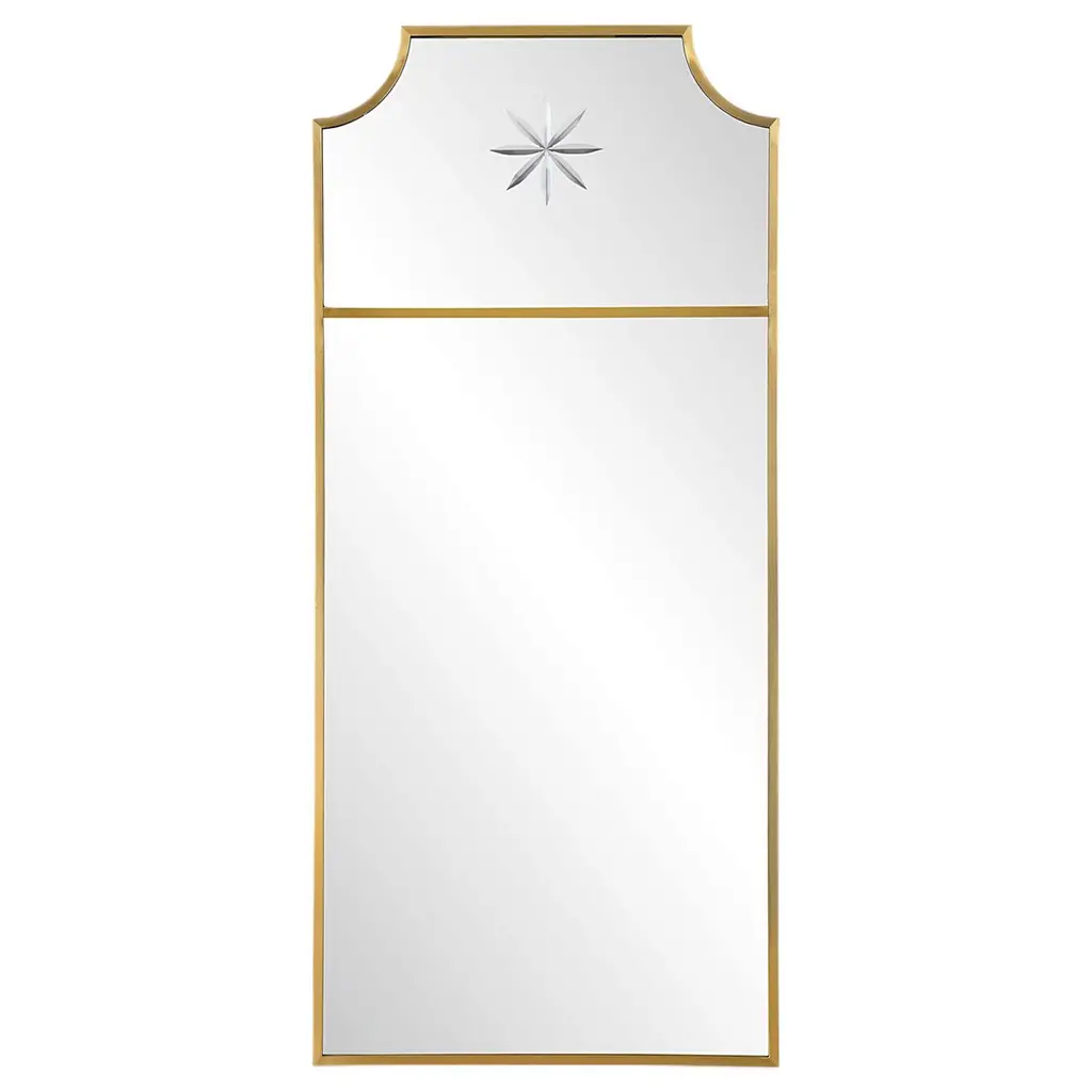 Showcasing an exquisite liberty-inspired border on the mirrored surface, this rectangular wall mirror features a minimal wood frame with a lacquered finish that lets the decorative accent stand out. Versatile and elegant, this sophisticated mirror can be displayed in a hallway or in a living room above a console, to increase the light in the room and add a touch of modern elegance.