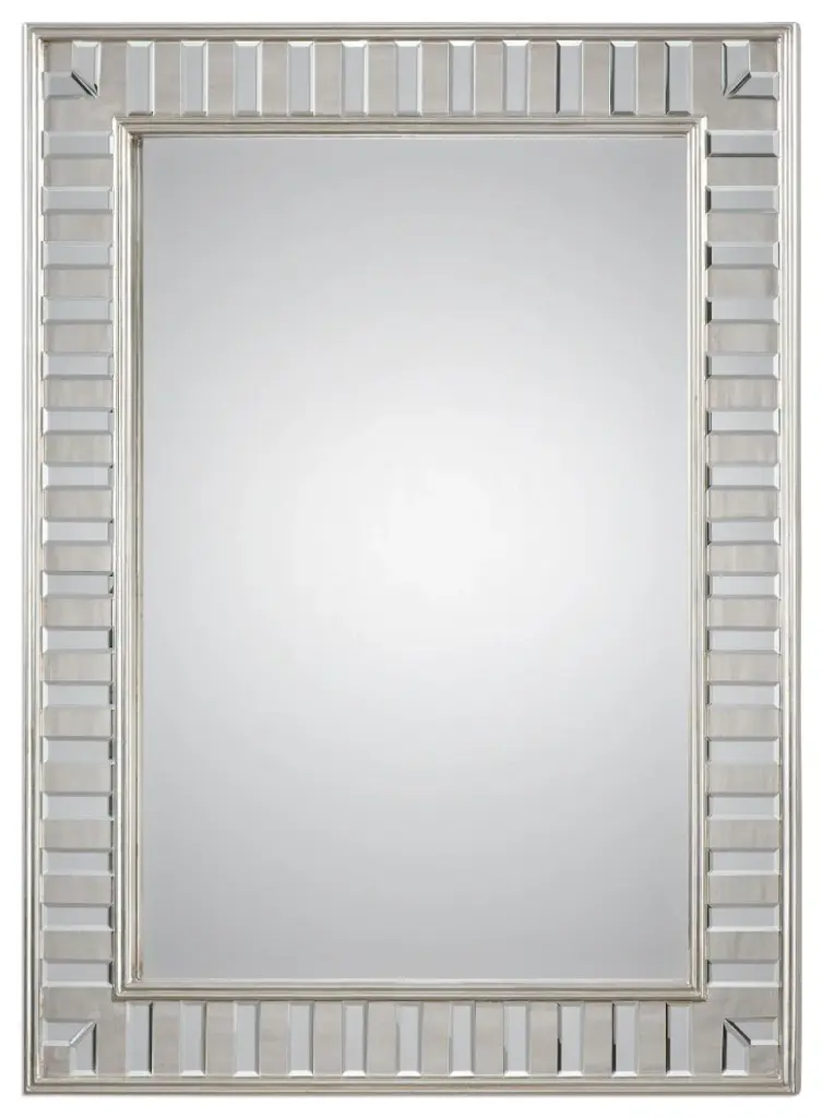 Echoing the classic style of stained glass windows, this mirror will make a welcomed statement on any wall in the house. The rectangular shape features a lacquered frame and beveled-edges mirrored glass accents that will lend elegant charm to any room. With its crisp lines and minimal design, this wall mirror is a sophisticated yet unpretentious addition to any interior.