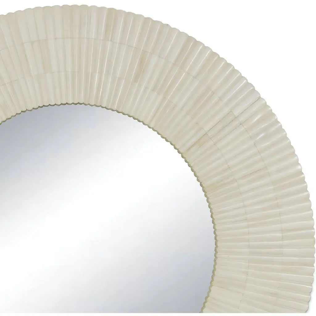 The Mirabelle Bone Mirror radiates elegance with its sunburst design reminiscent of Versailles' grandeur. Detailed bone accents encircle the frame, adding refined texture. It's a bright, decorative piece that brings light into any room.