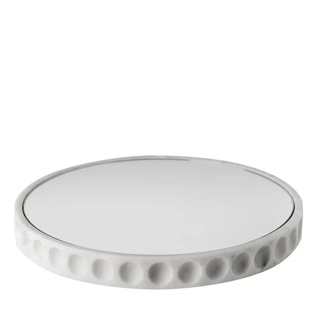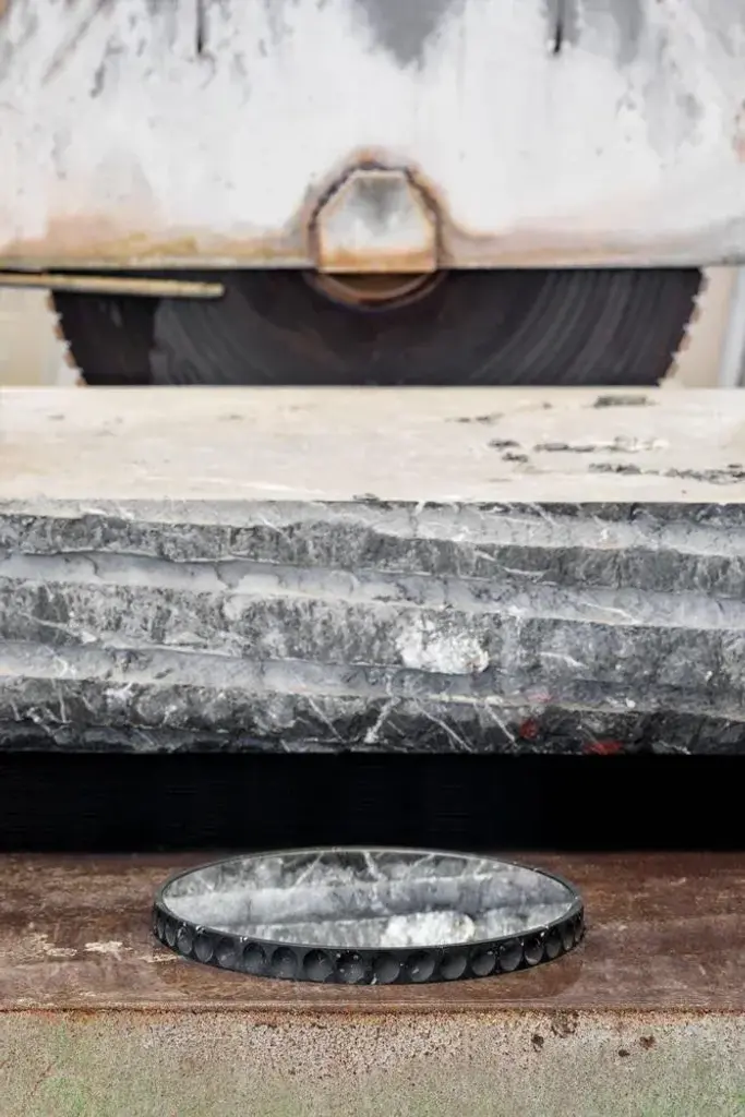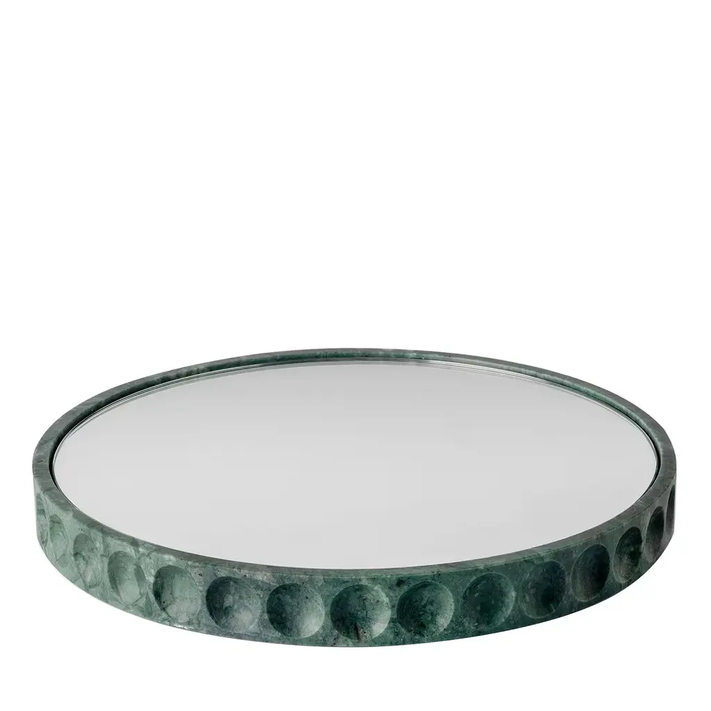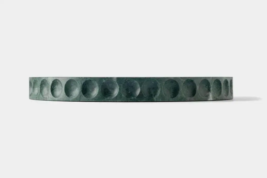 Mirage Specchio by Studio Intervallo Dimensions: D 30 x H 3.2 cm Materials: green Guatemala marble. Available in other stones. The Mirage collection comes from the monolithic materiality of stone. Shape and function coincide, creating an element without frills, which originates by subtracting materials. Full and empty spaces alternate each other and create dissolving shades of light thanks to the juxtaposition of decorations. It’s a container for objects full of its surroundings reflected on its surface. studiointervallo creates furniture and interior design. All its creations are painstakingly researched with a thorough use of full and empty spaces. For this reason, it could only exist between the fullness of the city of Milan and the emptiness of the countryside around it, in a place which is also ideal for meditating, as well as a stimulating anteroom to creative thinking. This unusual location’s aura successfully blends with the projects of studiointervallo, thus enriching them with nature in a final true epiphany which is the very soul of each single creation. Founded by Andrea Ghisoni, the studio pursues the perfect blending of essential lines with the brightness of the shapes and and the nobility of true craftsmanship; the overall goals would be to just make people happy.