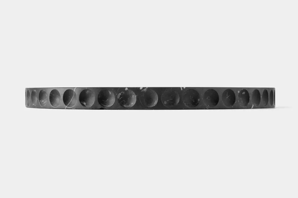 Mirage Specchio by Studio IntervalloDimensions: D 30 x H 3.2 cmMaterials: black Marquinia marble.Available in other stones.The Mirage collection comes from the monolithic materiality of stone. Shape and function coincide, creating an element without frills, which originates by subtracting materials.Full and empty spaces alternate each other and create dissolving shades of light thanks to the juxtaposition of decorations. It’s a container for objects full of its surroundings reflected on its surface.studiointervallo creates furniture and interior design. All its creations are painstakingly researched with a thorough use of full and empty spaces.For this reason, it could only exist between the fullness of the city of Milan and the emptiness of the countryside around it, in a place which is also ideal for meditating, as well as a stimulating anteroom to creative thinking.This unusual location’s aura successfully blends with the projects of studiointervallo, thus enriching them with nature in a final true epiphany which is the very soul of each single creation.Founded by Andrea Ghisoni, the studio pursues the perfect blending of essential lines with the brightness of the shapes and and the nobility of true craftsmanship; the overall goals would be to just make people happy.