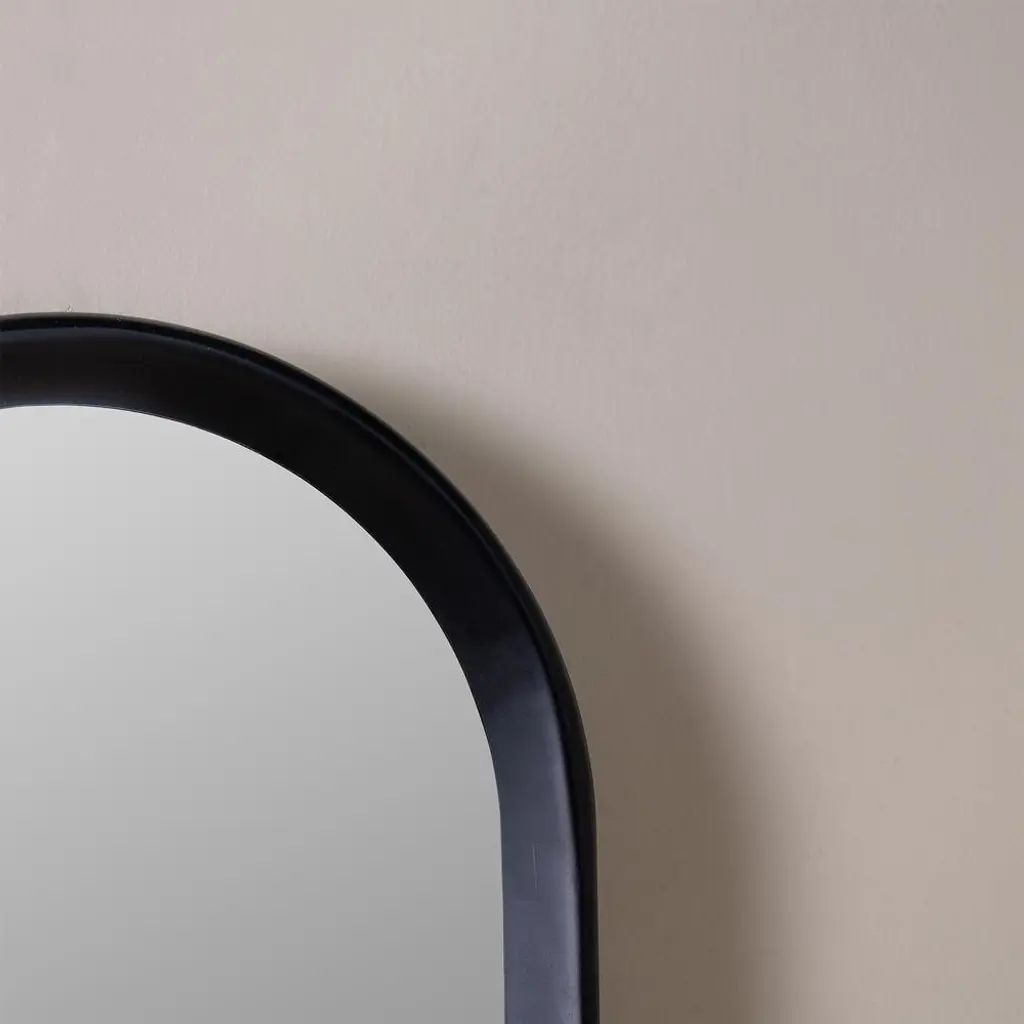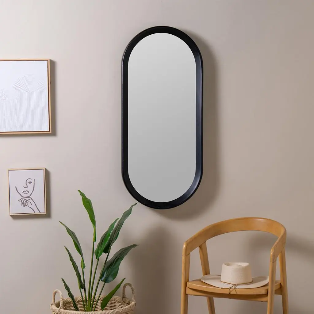 Mirah Modern Classic Black Mango Wood Frame Oval Wall Mirror