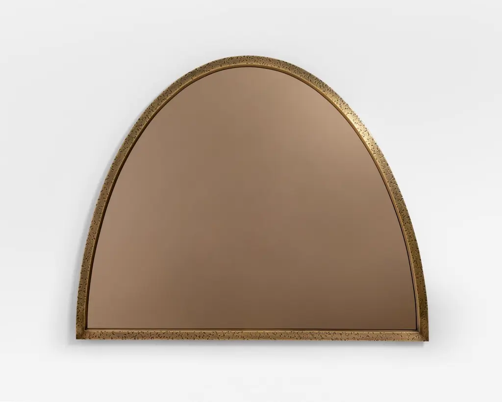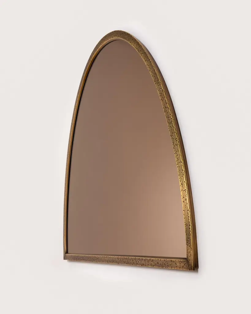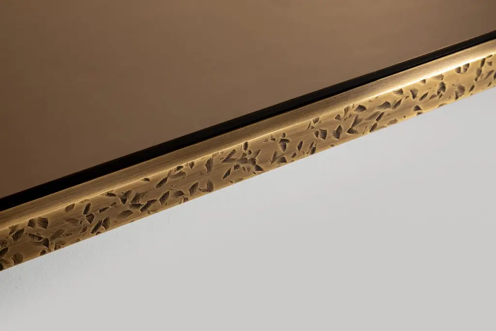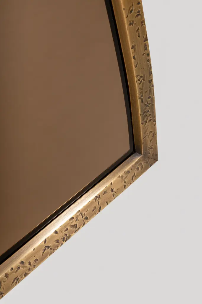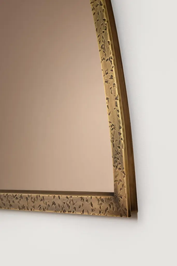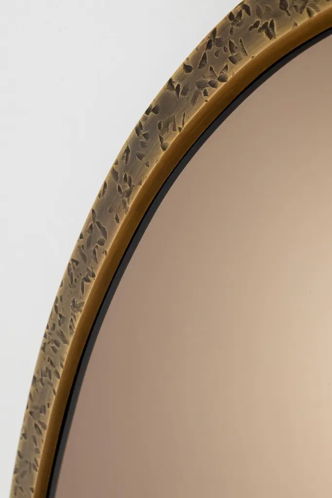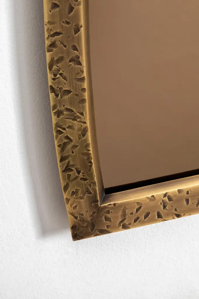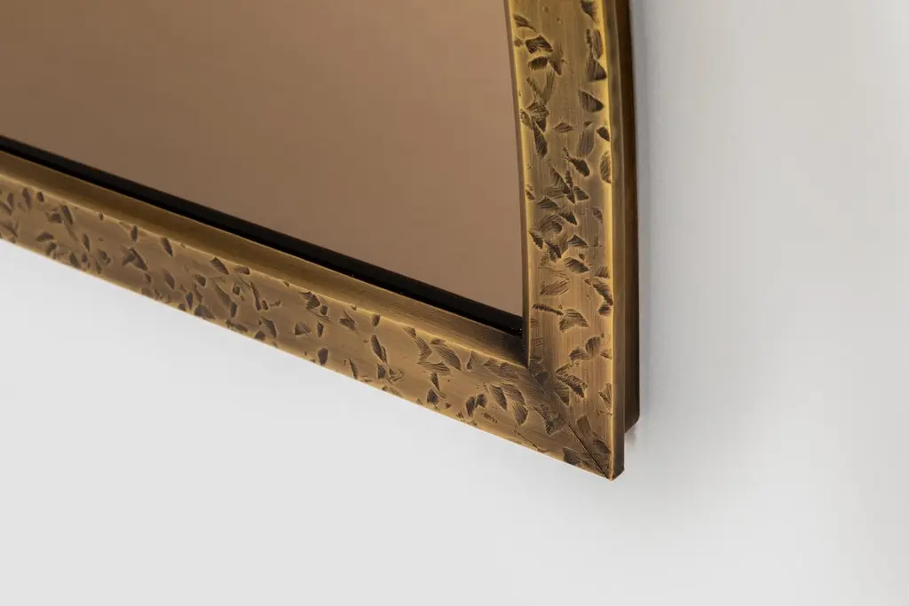 Mirooo Limited Edition mirror by Moure StudioLimited Edition of 8.Dimensions: D 60 x W 57 x H 57 cmMaterials: Ornate bronze and brass glass and patina.Luxurious mirror made of engraved golden patinated brass.Limited to 8 units.Moure / Studio is a Parisian interdisciplinary design studio founded in 2015 andspecialised in interior design and furniture design. At Moure / Studio, we believe that emotion and confort arise from color and material, with sober design. This style is inspired by painting and artistics movements such as as the Bauhaus, De Stijl & the Memphis movement. We like to create sensitive atmospheres through exclusive sleek design which respects the architectural volumes and spotlights the vibration of color. Our ethics lead us to collaborate with craftsmen and women who share with us their know-how. We are convinced that enrichment requires the pooling of several talents. Our passion for sharing and being open to the world pushes us towards working on worldwide projects.