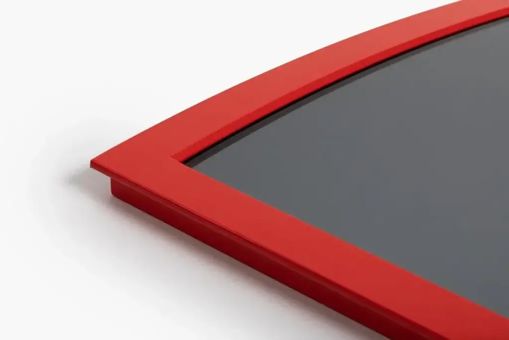 Mirooo medium mirror by Moure Studio. Dimensions: d 100 x h 80.5 cm. Materials: smoked glass and steel. 3 mirrors in grey smoked glass and coloured steel in different colours. Together, these mirrors give a strong look to an interior. Their graphic aspect results from a search of forms decomposition. Their pure colors and shapes create a light visual dynamic. Moure / Studio is a Parisian interdisciplinary design studio founded in 2015 and specialised in interior design and furniture design. At Moure / Studio, we believe that emotion and confort arise from color and material, with sober design. This style is inspired by painting and artistics movements such as as the Bauhaus, De Stijl & the Memphis movement. We like to create sensitive atmospheres through exclusive sleek design which respects the architectural volumes and spotlights the vibration of color. Our ethics lead us to collaborate with craftsmen and women who share with us their know-how. We are convinced that enrichment requires the pooling of several talents. Our passion for sharing and being open to the world pushes us towards working on worldwide projects.