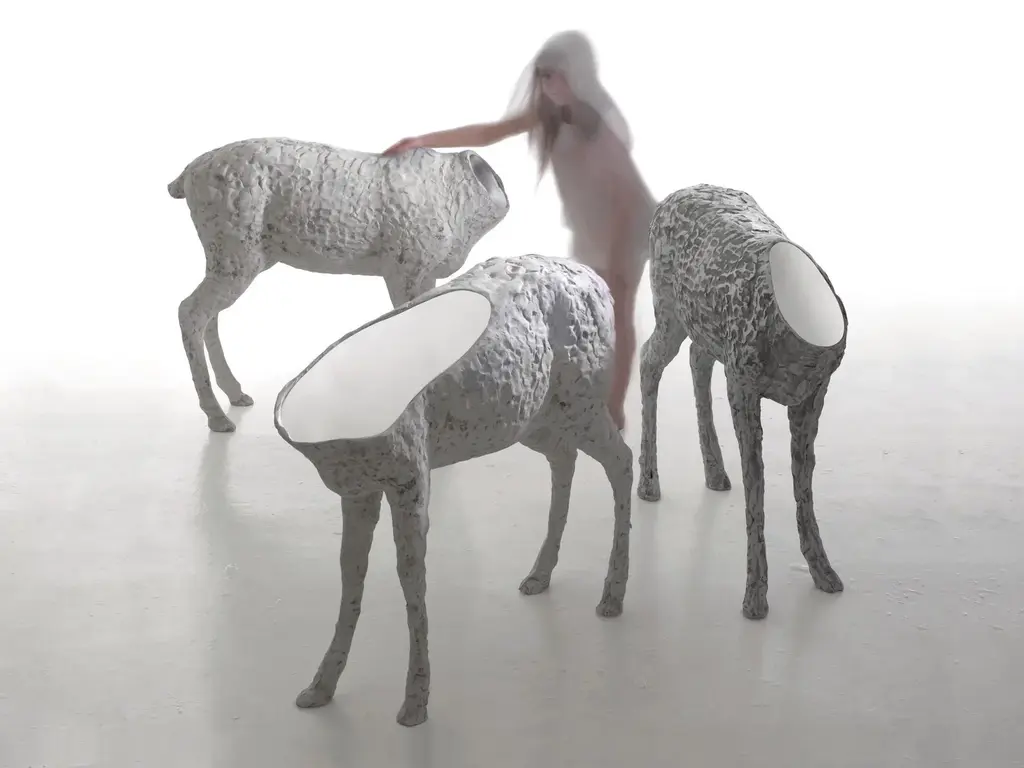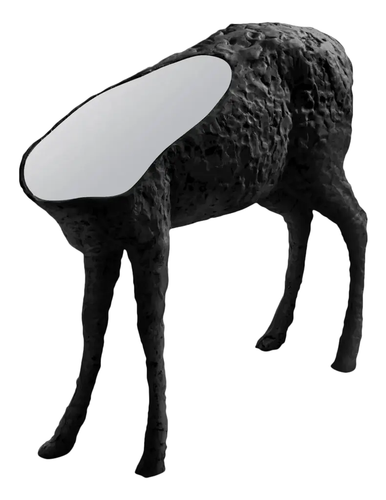 Mirroe sculptured mirror by imperfettolab dimensions: w 110 x d 32 x h 90 cm materials: fiberglass, mirror available in 2 colors: black, white. A mirror that seems to come from a dream in which creatures of the animal world and symbolic objects meet and merge, giving life to mythological figures. A sculptural element with a strong visual impact and dreamlike charm. In limited edition, certified and numbered. Imperfetto lab who we are ? we are a family. Verter turroni, emanuela ravelli and our children elia, margherita and eusebio. All together, we are separate parts and their expansion. The laboratory is in the care of verter. From the sketch on paper he mixes materials, shapes and colours to the definition of the object. His intuitive and visionary research is performed with the complicity, recognition and practical support of his brother erich. Emanuela is the voice of a vivid and silent work. She connects imperfettolab with the other and with the rest of the world, respecting its nature and identity. She watches over its wholeness and authenticity. The playful spirit is entrusted to our children. They are the ones who test our works, certify their durability, functionality and enjoyment. We believe it is their expression, after all, that validates and makes our work universal.