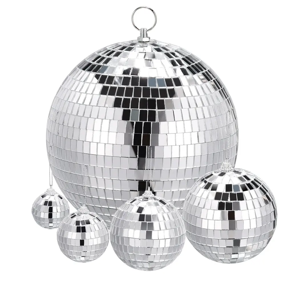 Add sparkle and shine to any event with our Mirror Ball Set. Made of foam inner and glass tiles, these reflective balls create stunning lighting effects that are perfect for parties, weddings, and more. Choose from sizes ranging from 1.6 inches to 8 inches in a sleek silver tone. Hang them from the ceiling, wall, or anywhere you like to instantly transform any space. Get ready to fill your venue with dazzling lights and create a magical ambiance that everyone will love.Features: