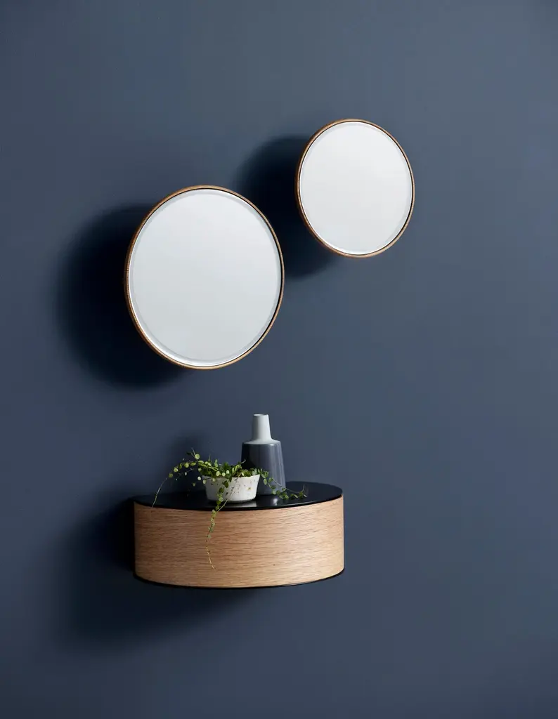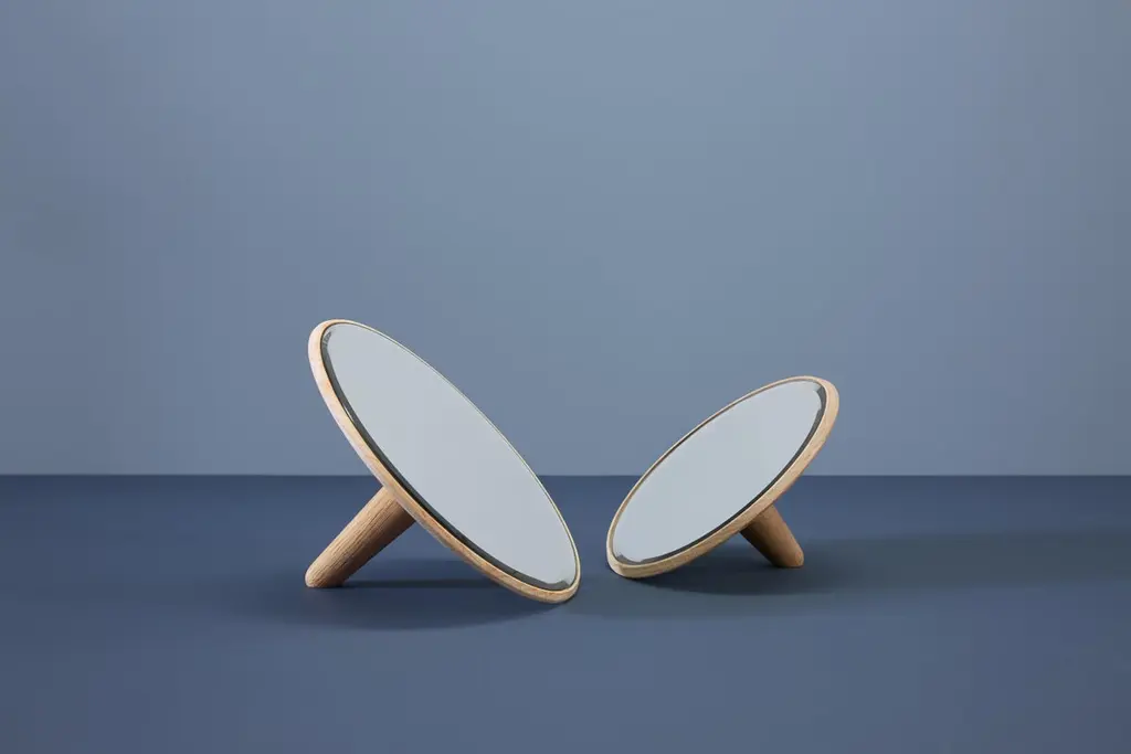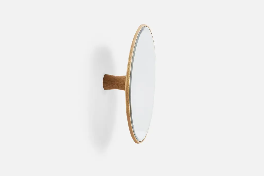 Mirror Barb by Martin ZanolinMaterials: oak.Dimensions: D 11.5 x W 26 x H 26 cmMirror Barb is a circular mirror made from solid oak. Made for multiple purposes. Themirror comes with both a bracket for the wall and a handle, which allows you the style the design as you like. The faceted glass elegantly captures and reflects the light making it ideal is a decoration object. The mirror can act as a decorative accessory or as a handheld makeup mirror.Martin ZanolinA talented Austrian designer and architect. With a drive to create minimalist design, hehas great attention to the choice of materials and purpose. Martin Zanolin develops designs with sustainability in mind.WOUDThe founders, Mia and Torben Koed, decided to put their 30 years of experience into a new project. It was time for a change and a new challenge. The challenge was to build an ambitious design brand from the ground up with high-quality materials and great attention to the little details. With a drive to create new originals, the WOUD collection is founded upon the idea to look ahead instead of looking back and share the love for honest design. Therefore, we are eager to discover and develop new ideas whether it being in form, function or choice of material.