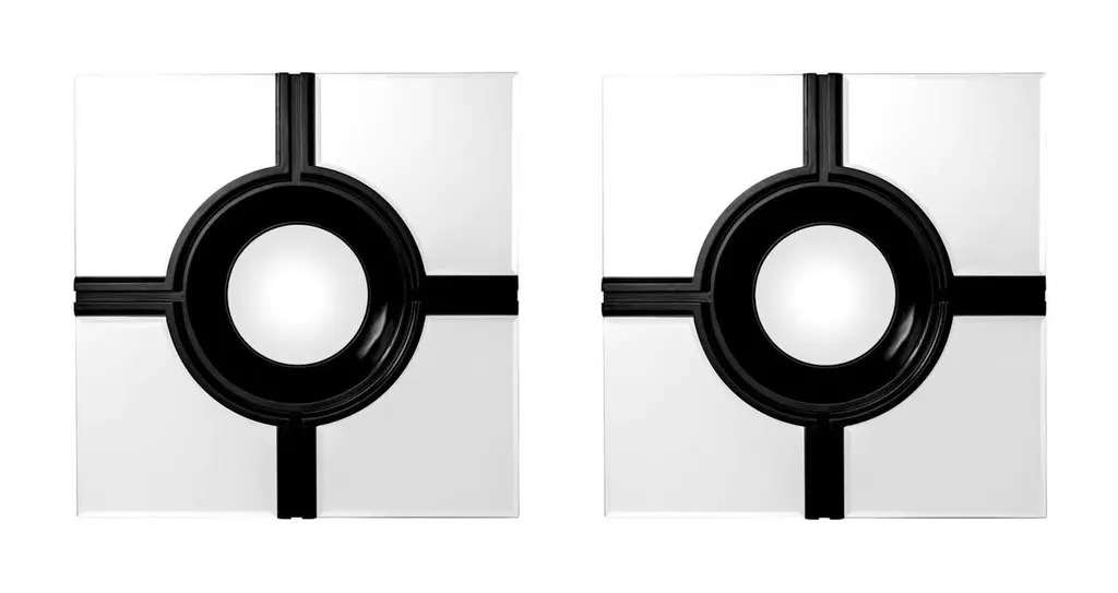Mirror, black finish, and central convex mirror.Inspired by luxurious Art Deco mirrors, this square mirror is ideal for both classic and contemporary interiors.Its clean-lined black frame allows the four corner mirrored glass segments to harmoniously reflect your interior decor. The central convex mirror is surrounded by a black wooden grid.L. 61 W. 61 D. 8 cm