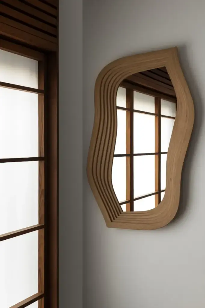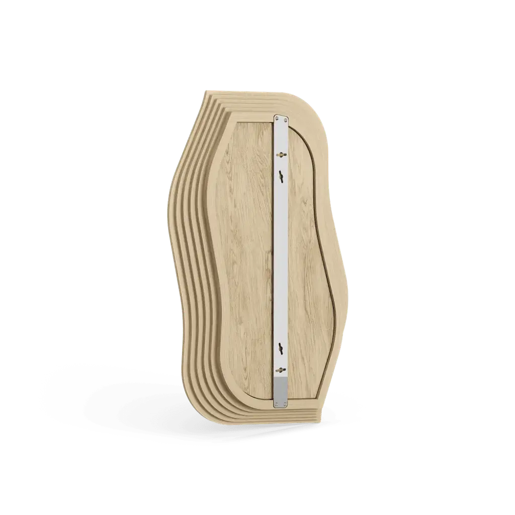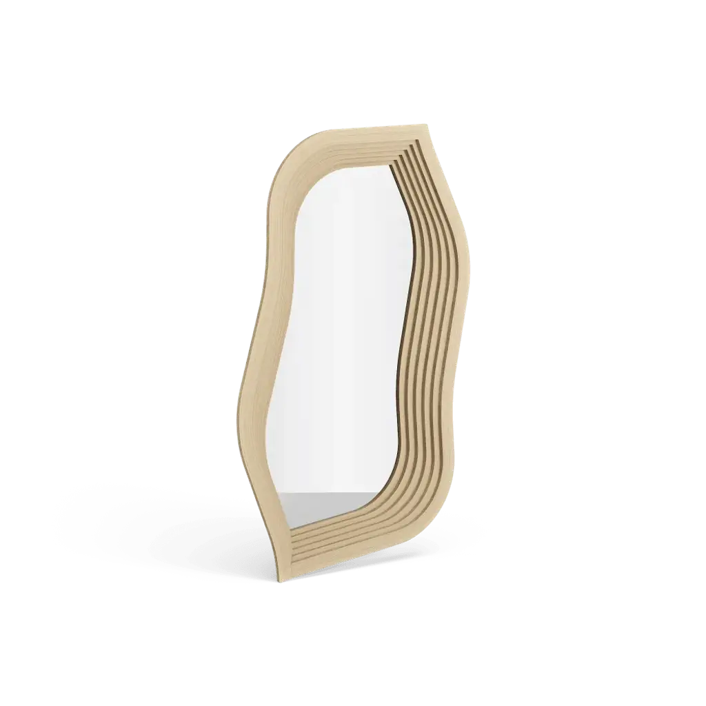 Oak, Untreated Design duo Front was asked by Swedese to create something beautiful and useful from waste pieces from their own production, a typical project for how we work with Swedese Studio. A prototype was then created from leftover pieces of laminate from the production of Yngve Ekström's classic Lamino. Which later became our mirror Mirror, now awarded with the Born Classic award. The mirror is made of untreated oak veneer and is 49 cm wide and 88 cm high. Labeled by Maker