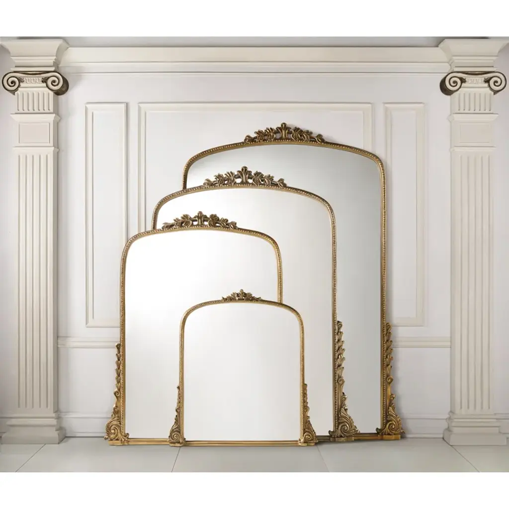 This gorgeous mirror with a gilded accent will enhance your interior design! Its exquisite frame, which is made from the finest materials and features an elegant and classic design, will add elegance and style to any space. It is ideal for getting ready in the morning or checking your outfit before leaving for the day because of its generous size, which provides for a full-body view. With its luxurious look and feel, this mirror is sure to impress your guests and become a cherished addition to your home for years to come. Whether you're looking to update your bedroom, living room, or entryway, it's the perfect piece to tie it all together. Don't wait any longer to upgrade your home decor - order now and see for yourself why this gold accent mirror is a must-have!