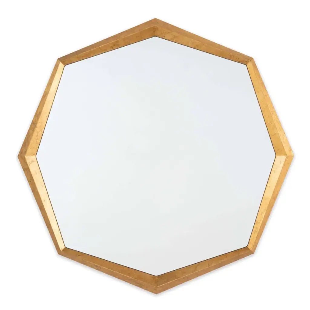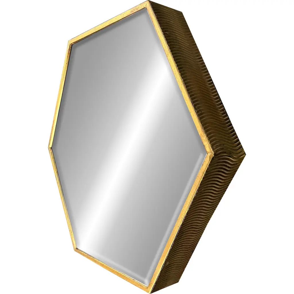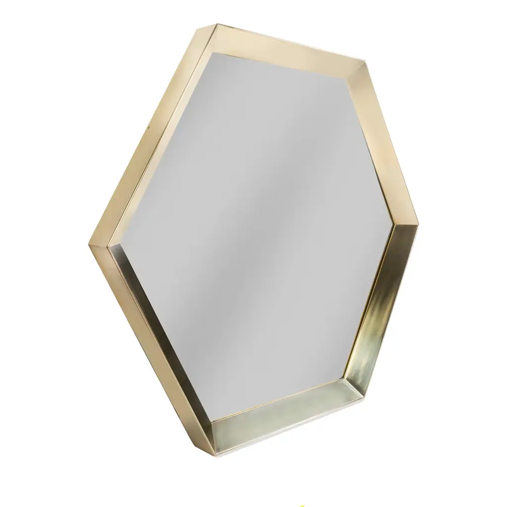 Hexagon mirror with burnished gold frame. (mirror size without frame: 24h x 27w)