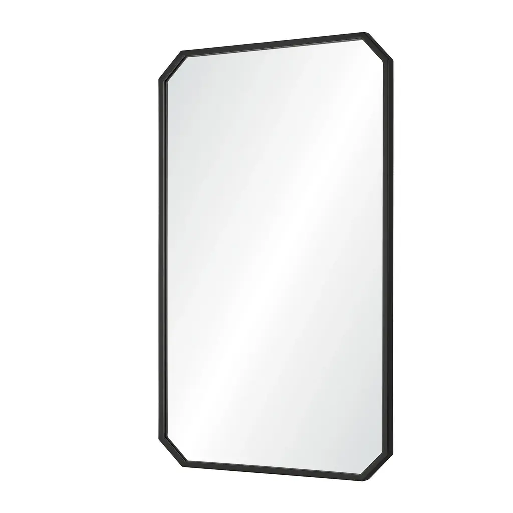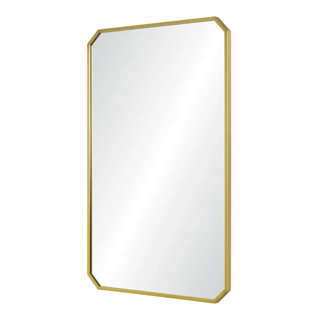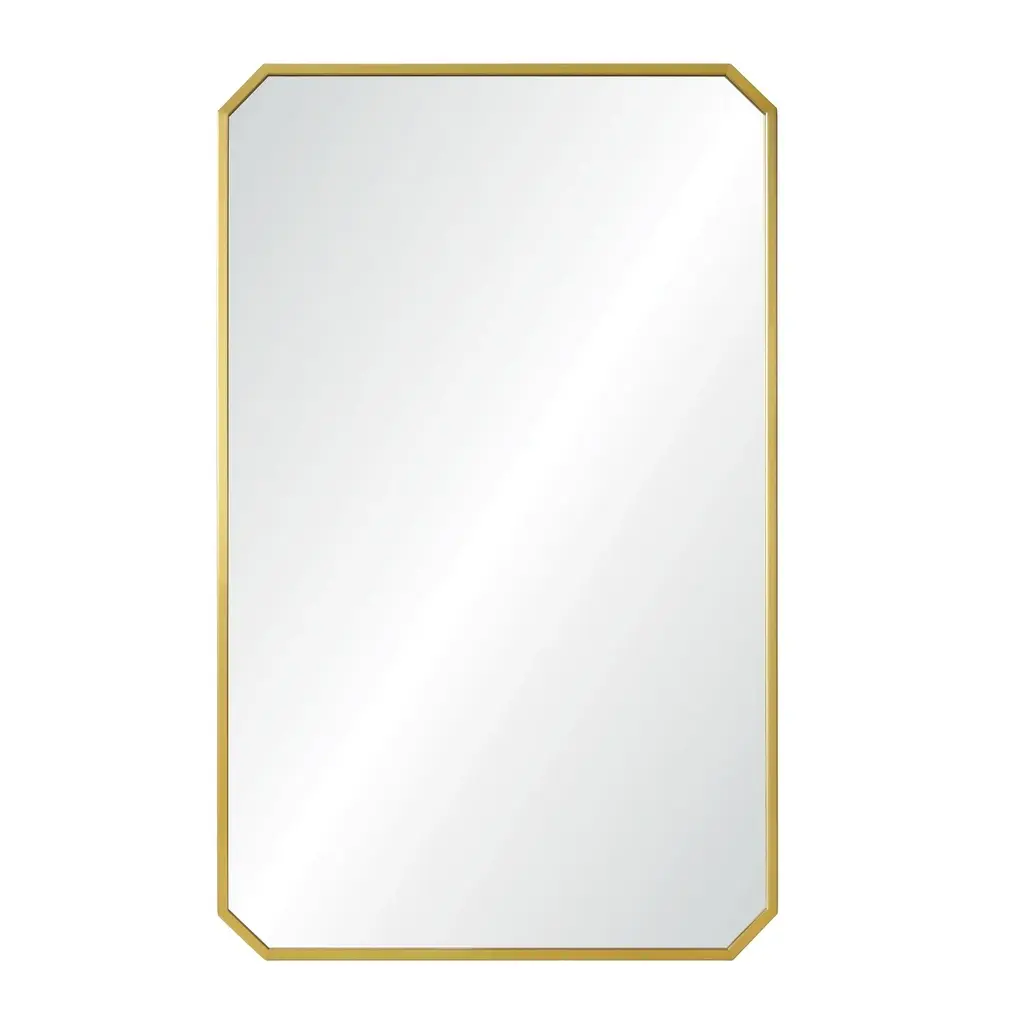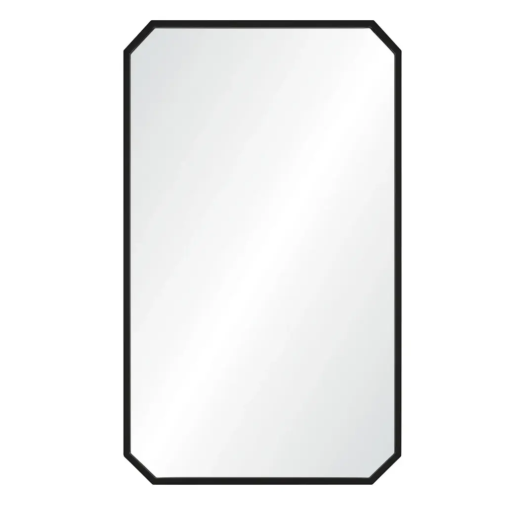 Hand welded stainless steel mirror finished in black nickel, burnished brass or polished stainless steel. Non-beveled center mirror. Cleat hardware provided. Item can hang horizontally or vertically.