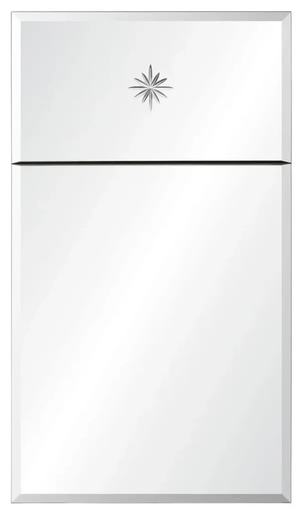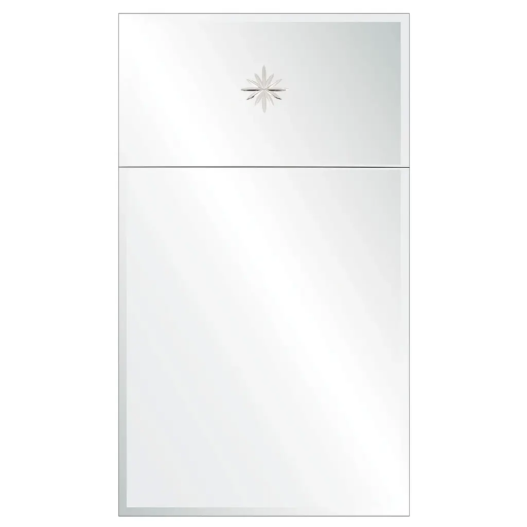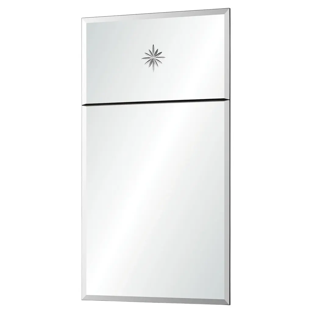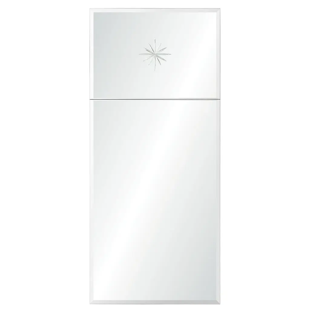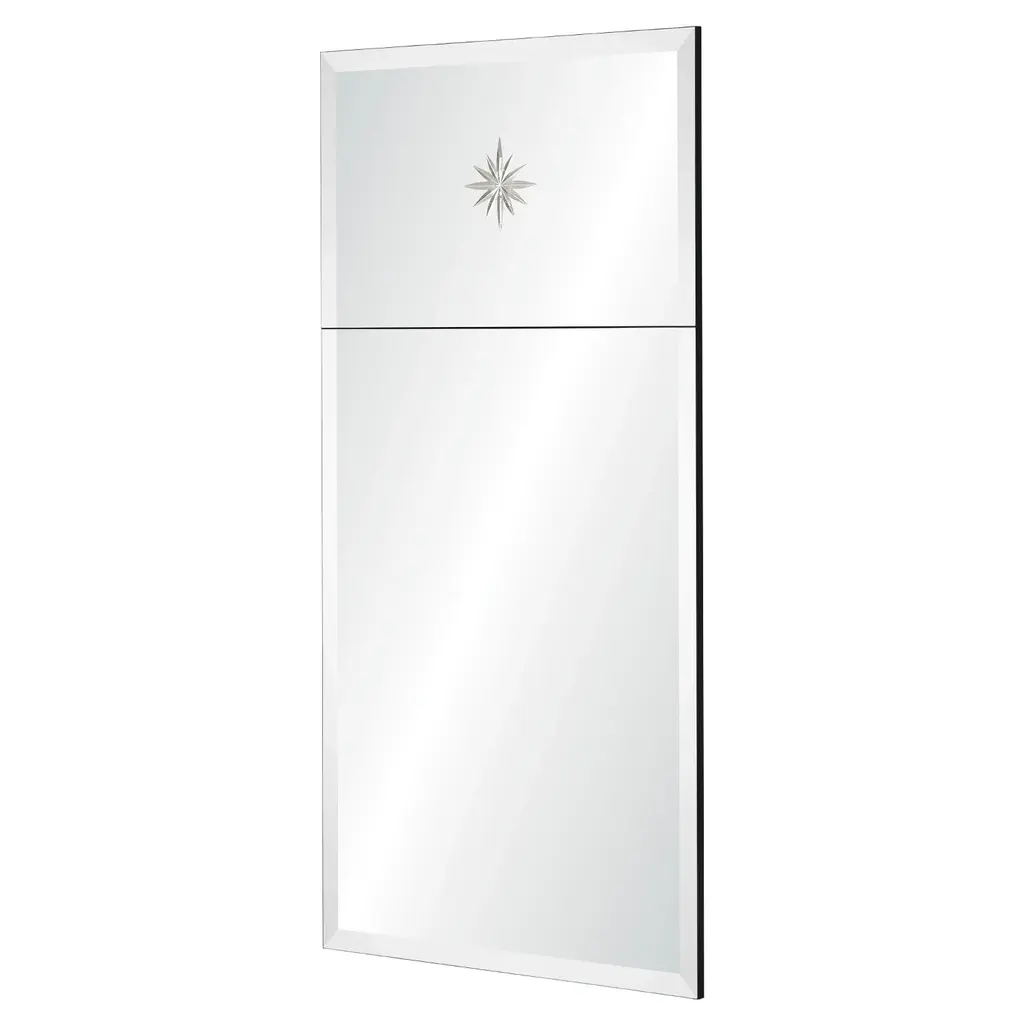 This beautiful Trumeau mirror by Mirror Home features a hand etched star. Cleat hanging hardware provided. Wood backing in satin black finish. Dimensions: 24" x 46" (Small), 30" x 52" (Medium) or 32" x 72" (Large) Materials: Wood and Mirror Finish: Aged Silver Leaf Beveled. Ships via FedEx. Free shipping in the U.S.