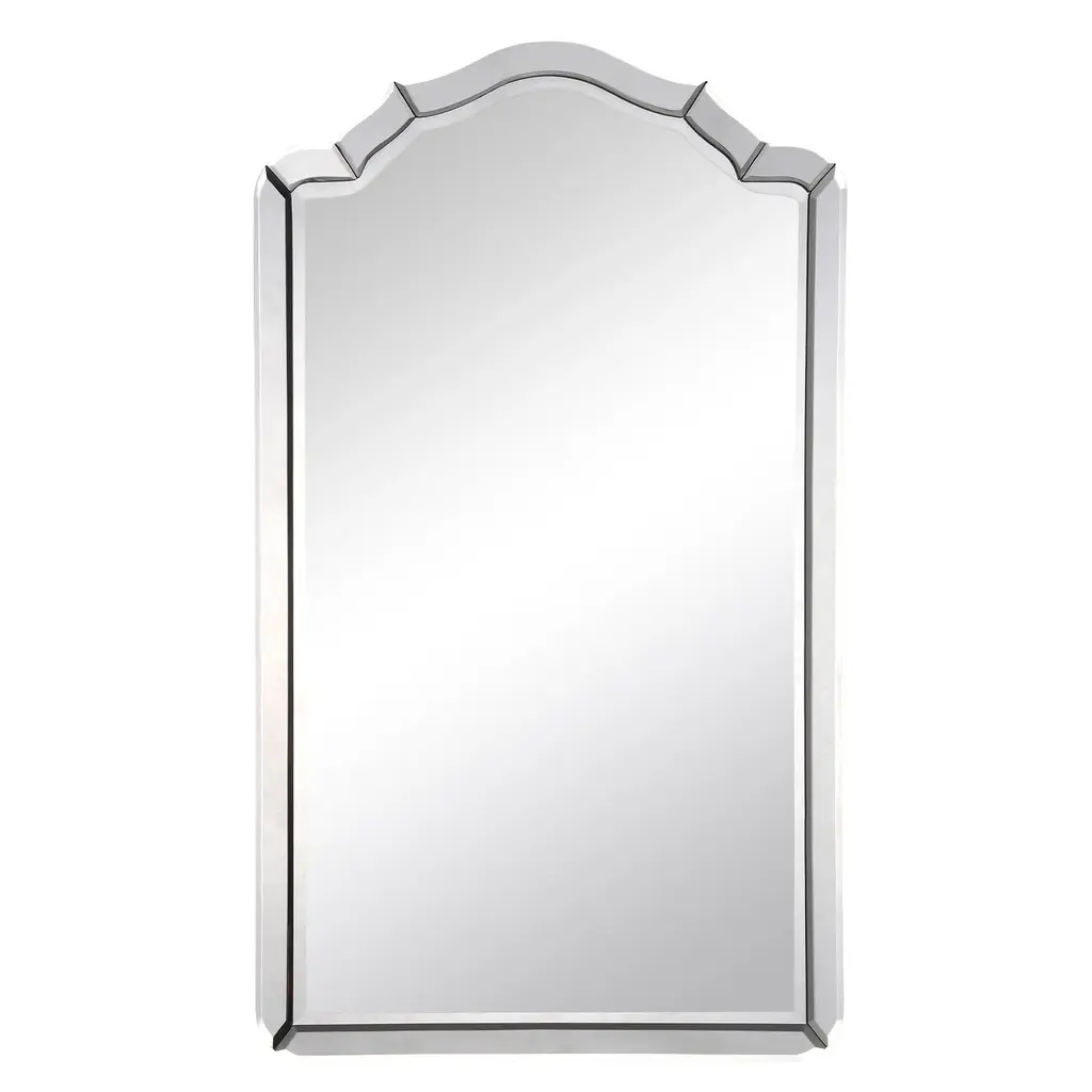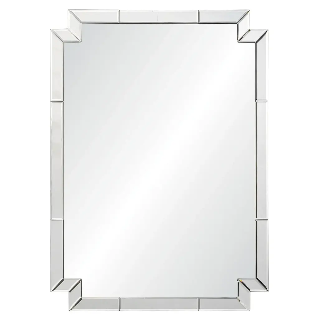 Mirror framed mirror with a non-beveled center mirror surrounded by hand cut and beveled tile mirrors. Wood backing in satin black finish. Cleat hanging hardware provided. Item can hang horizontally or vertically. This classic room accessory is a must have for today's modern interiors!